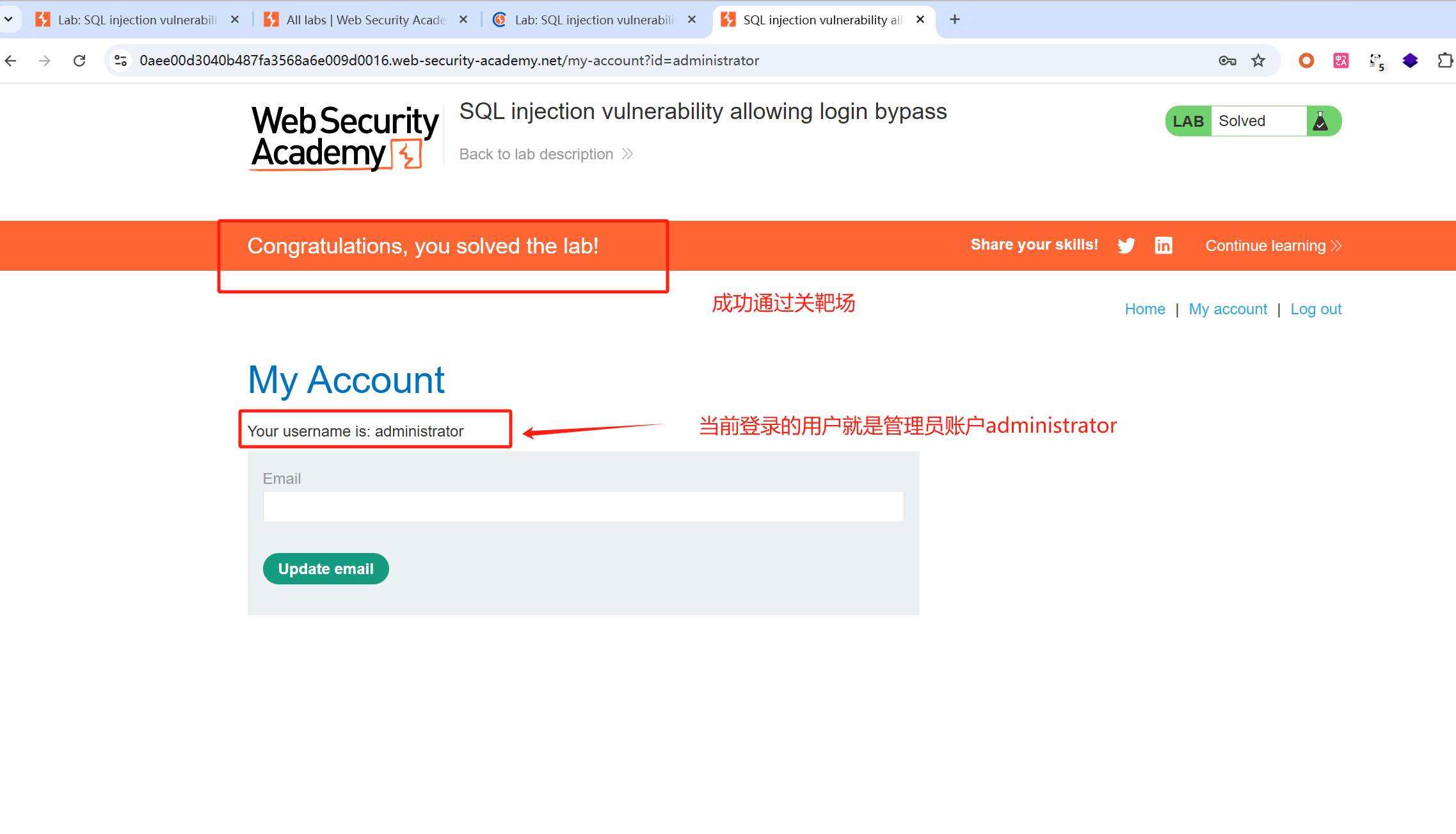 这一关就是在登录的时候,进行SQL注入攻击,从而实现以管理员的身份进行登录
