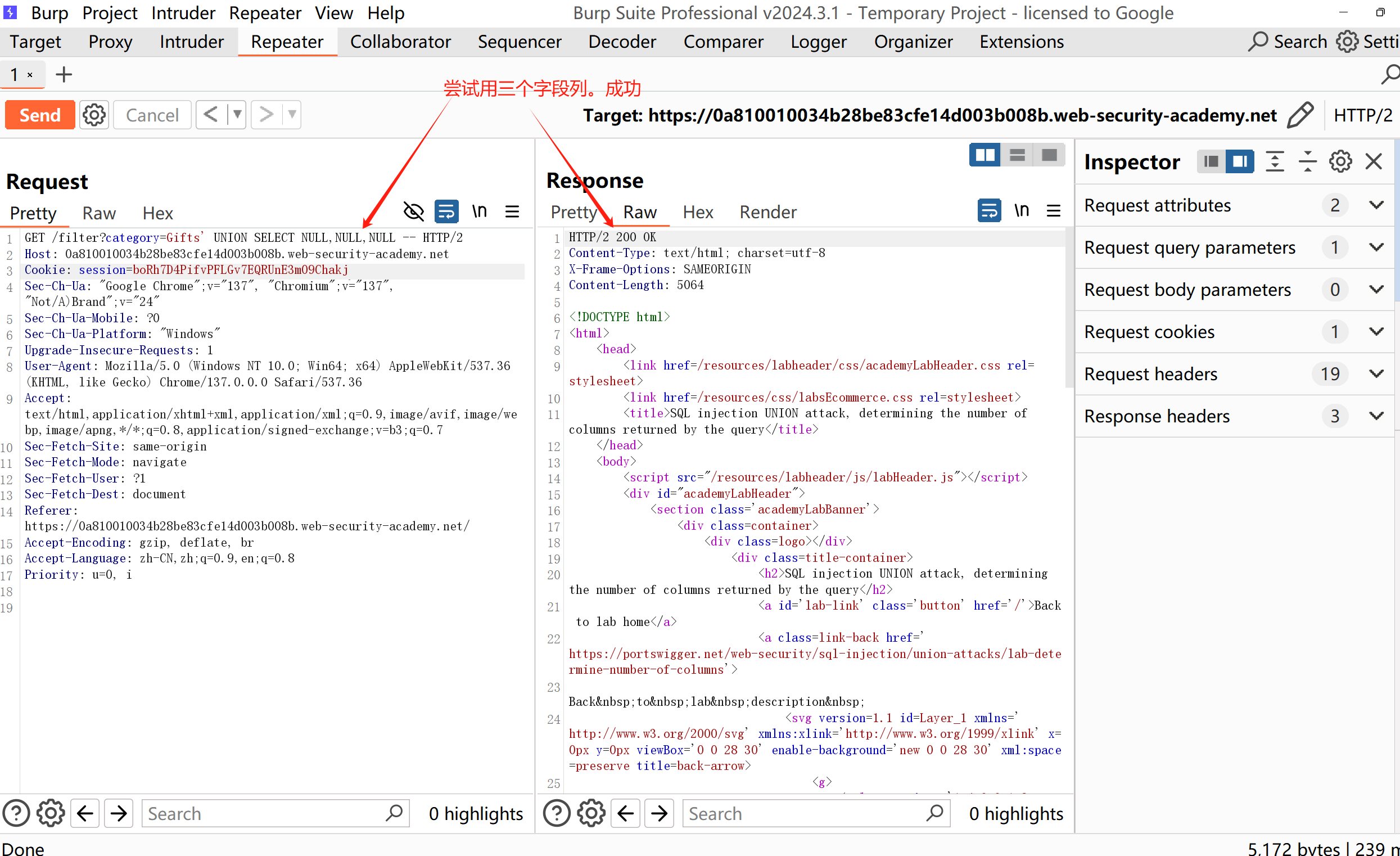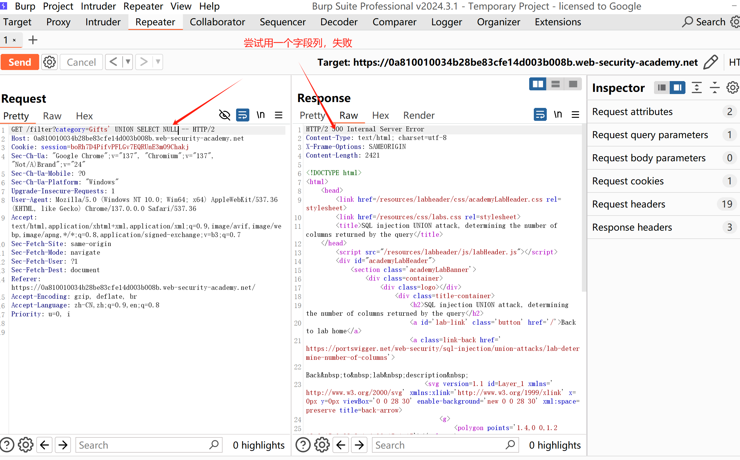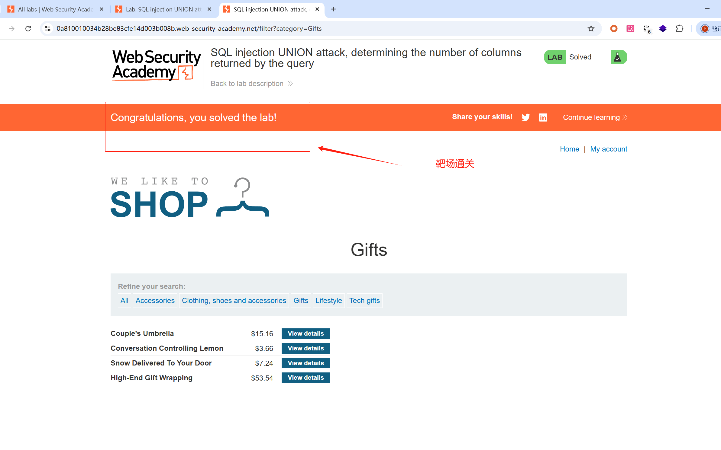 第七关 SQL 注入 UNION 攻击,确定查询返回的列数
