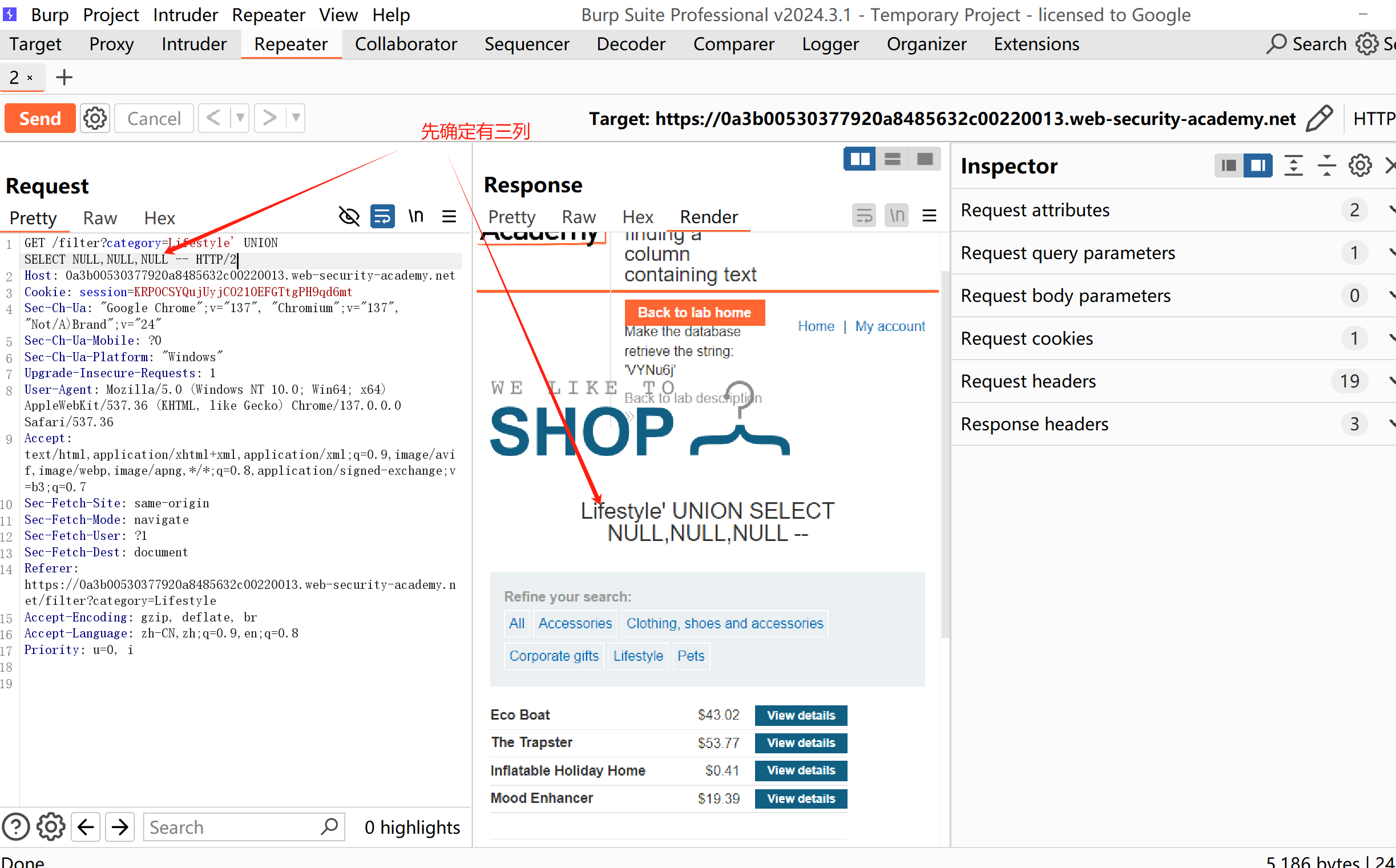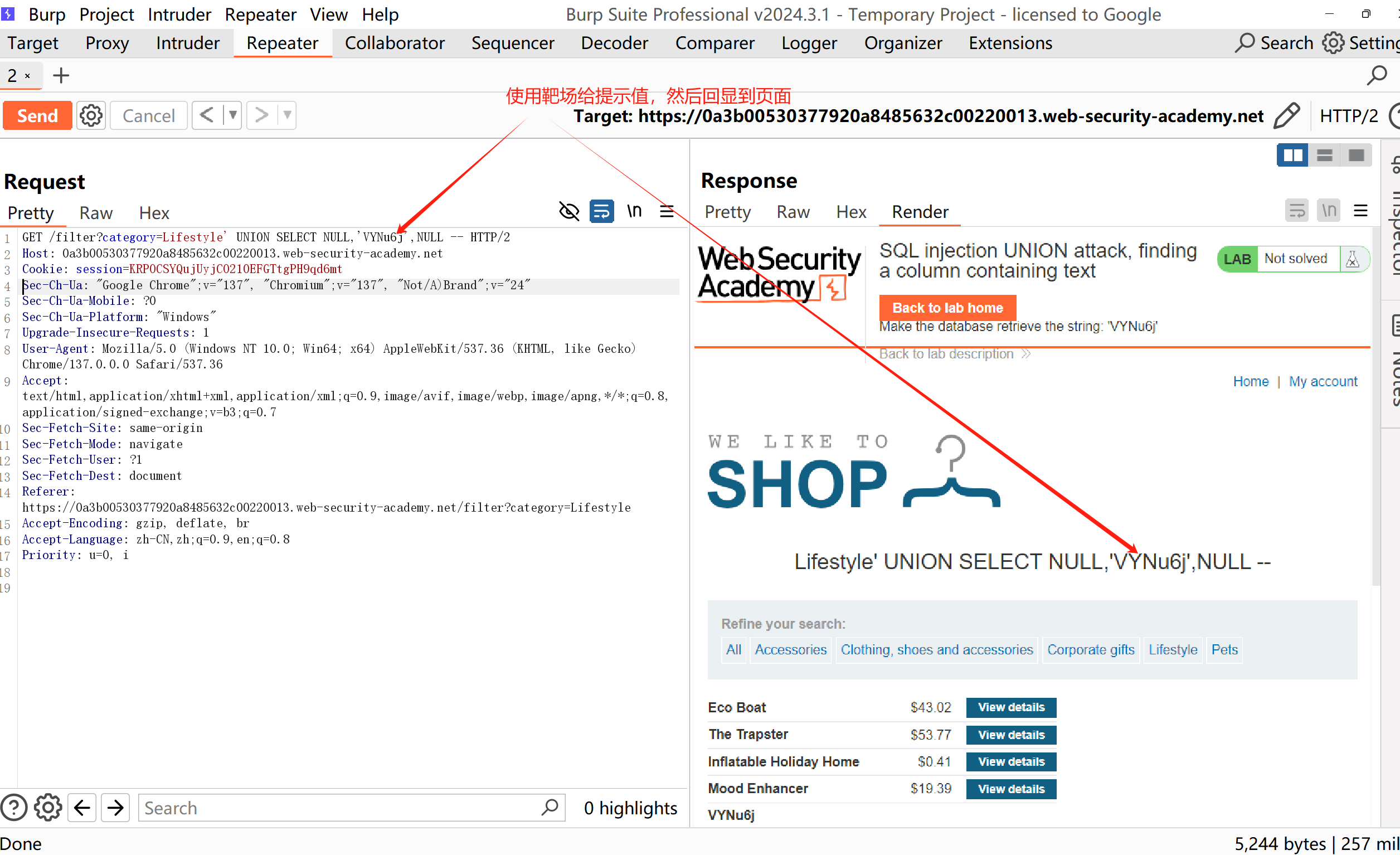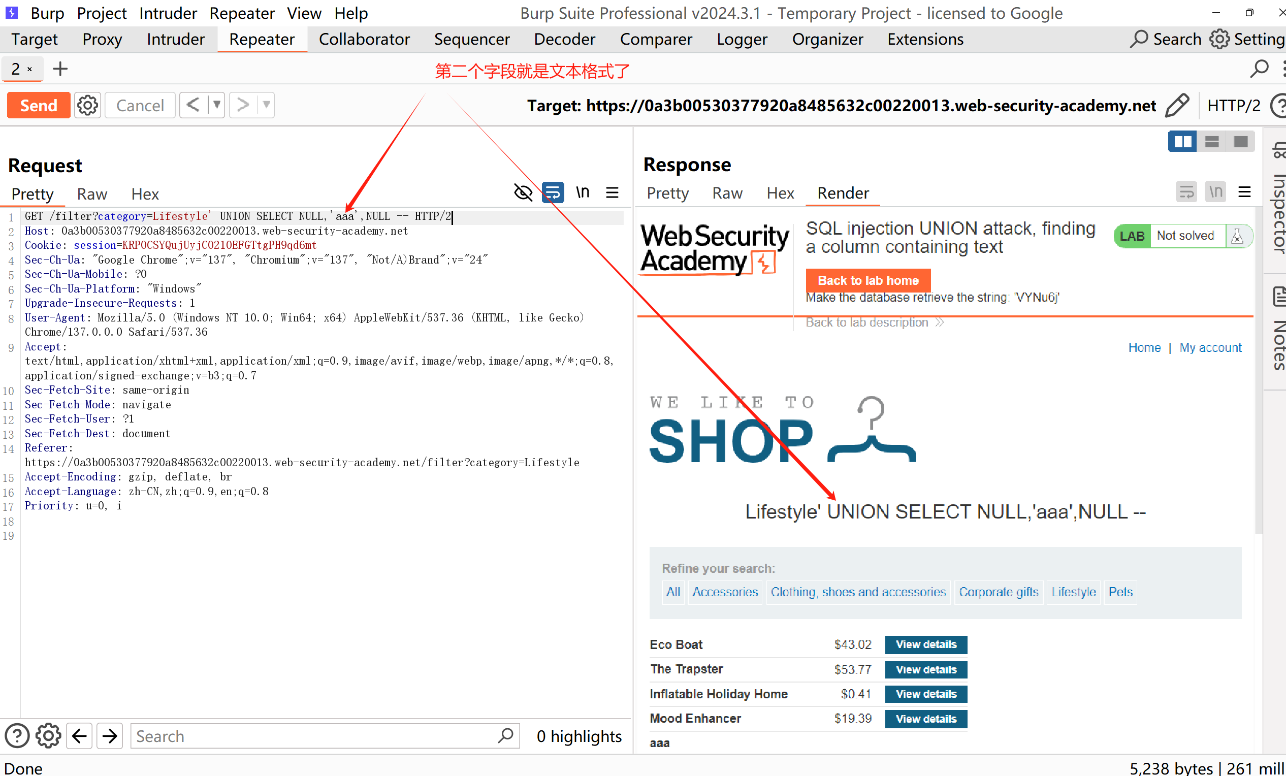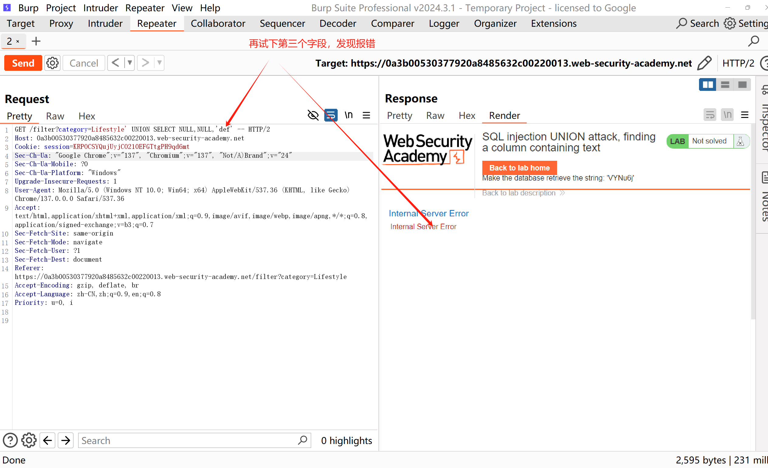 第八关 SQL 注入 UNION 攻击,查找包含文本的列