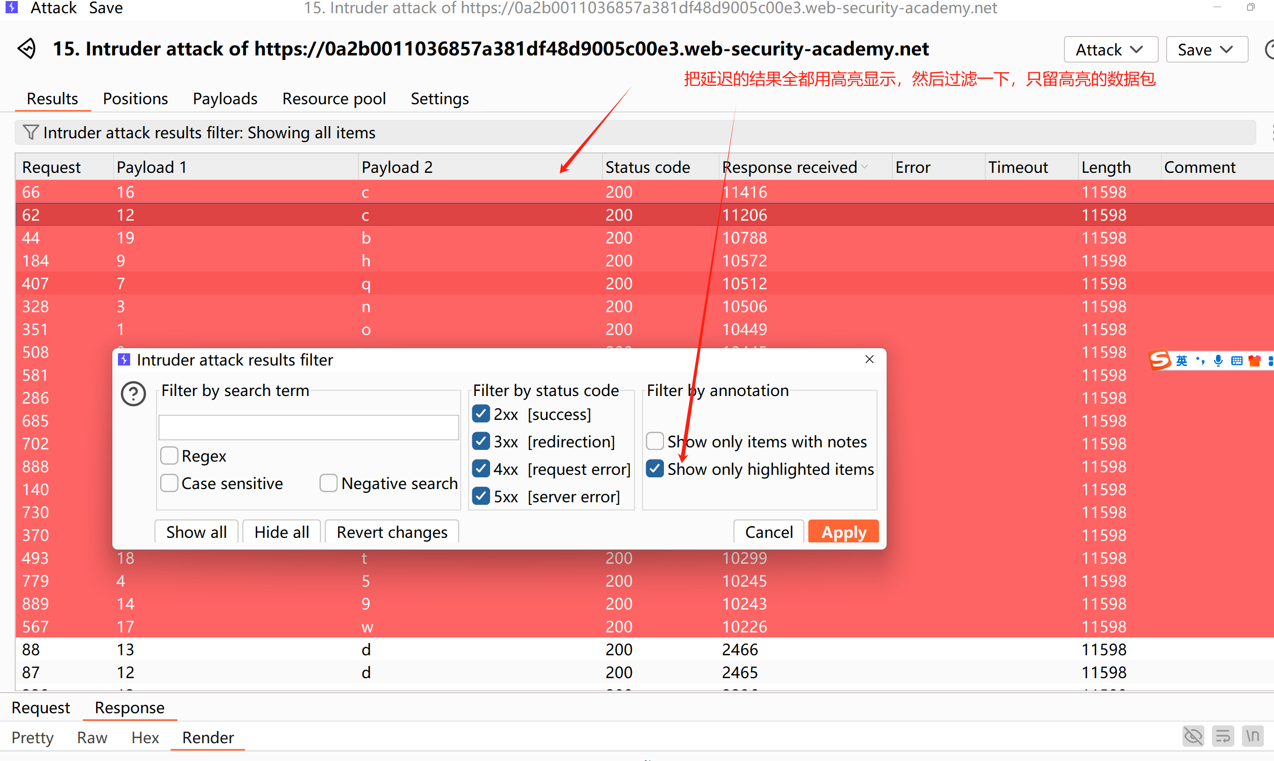 9、开始攻击,攻击完成,把延迟的结果全都用高亮显示,然后过滤一下,只留高亮的数据包