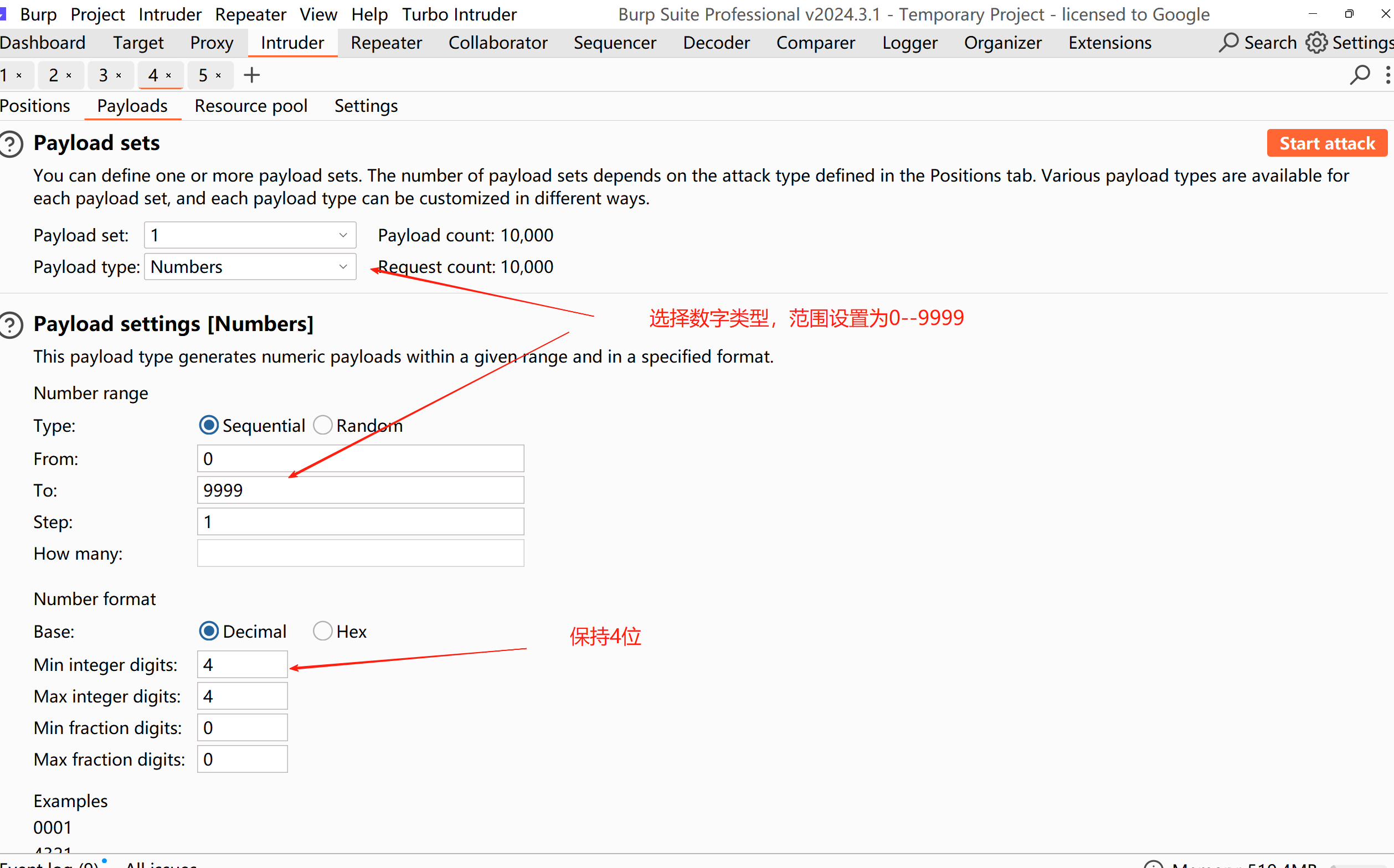 选择数字类型,范围设置为0--9999