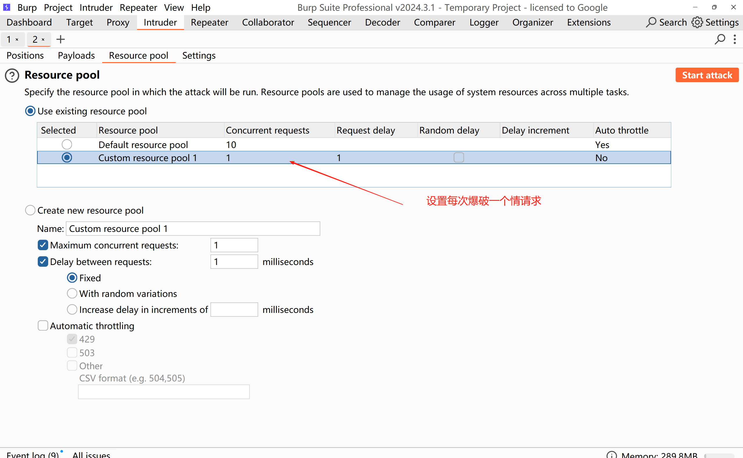 15、由于设置了宏,每次都要跑前置的三个包,所以不能同时跑十个,线程池设置每次爆破一个请求数据包,一个包一个包的跑