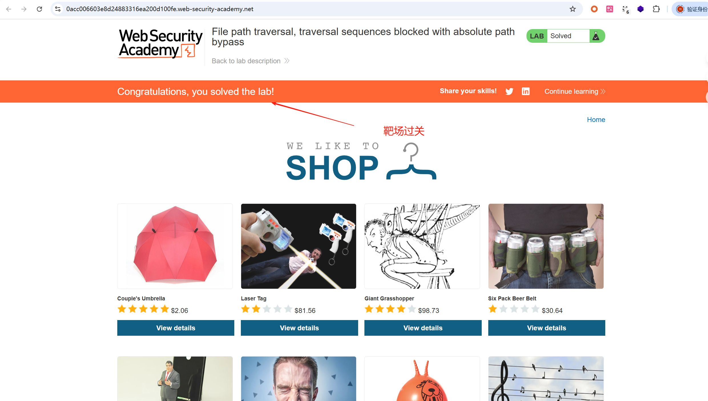 这一关就是存在路径遍历漏洞,但是靶场禁止遍历路径,那我们使用绝对路径进行绕过
