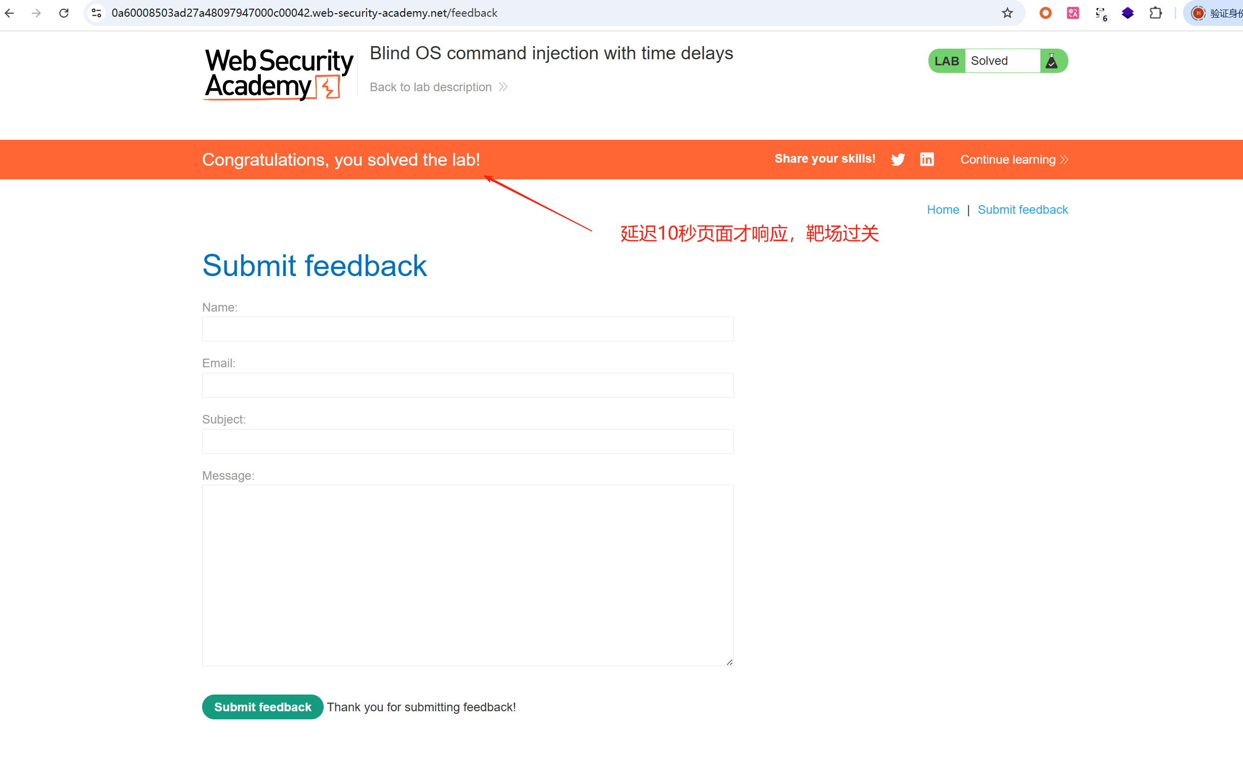 第二关 具有时间延迟的盲注操作系统命令注入