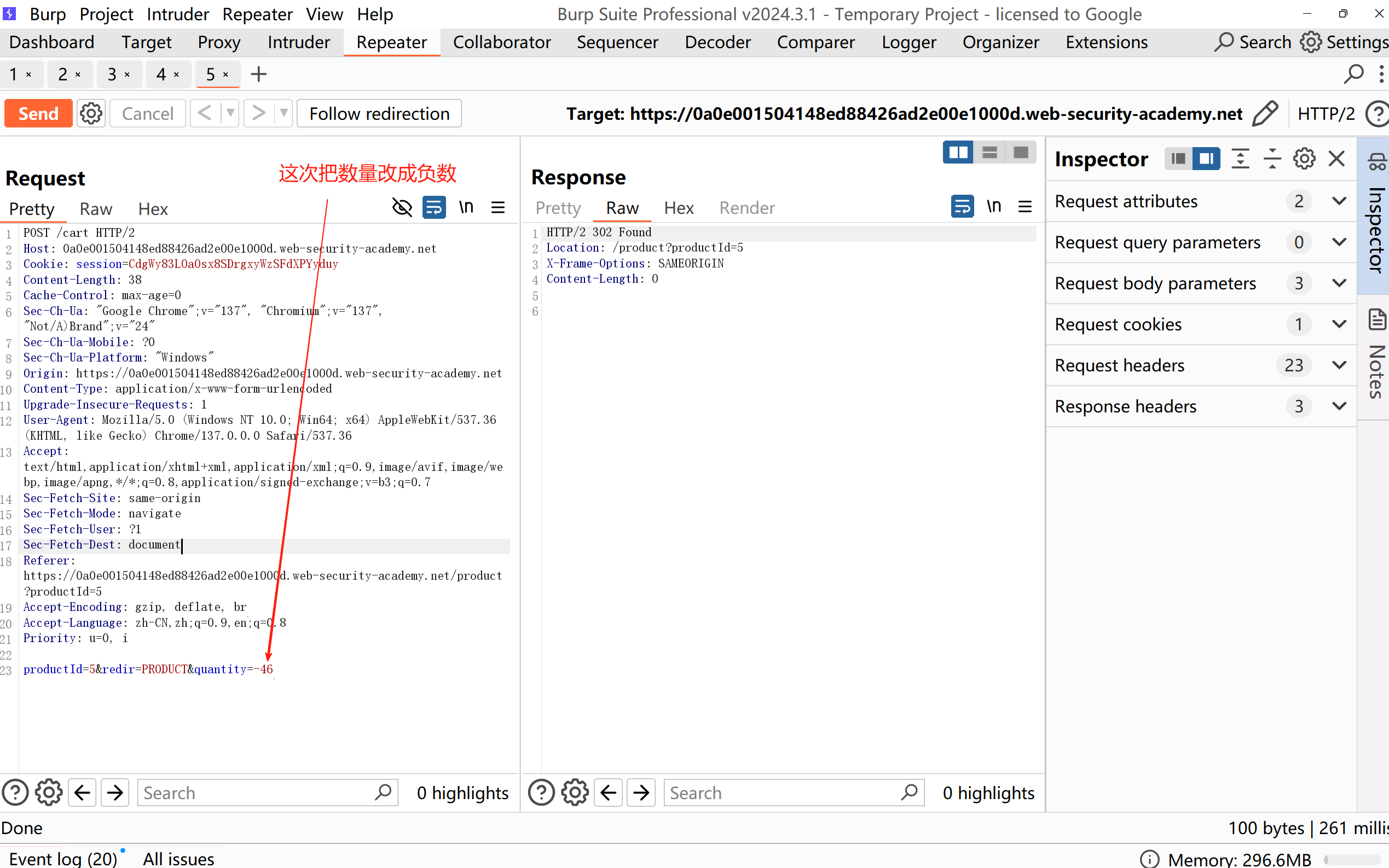 这一关就是通过篡改商品数量参数为负数,并叠加其他商品使总价合法,从而绕过支付限制。