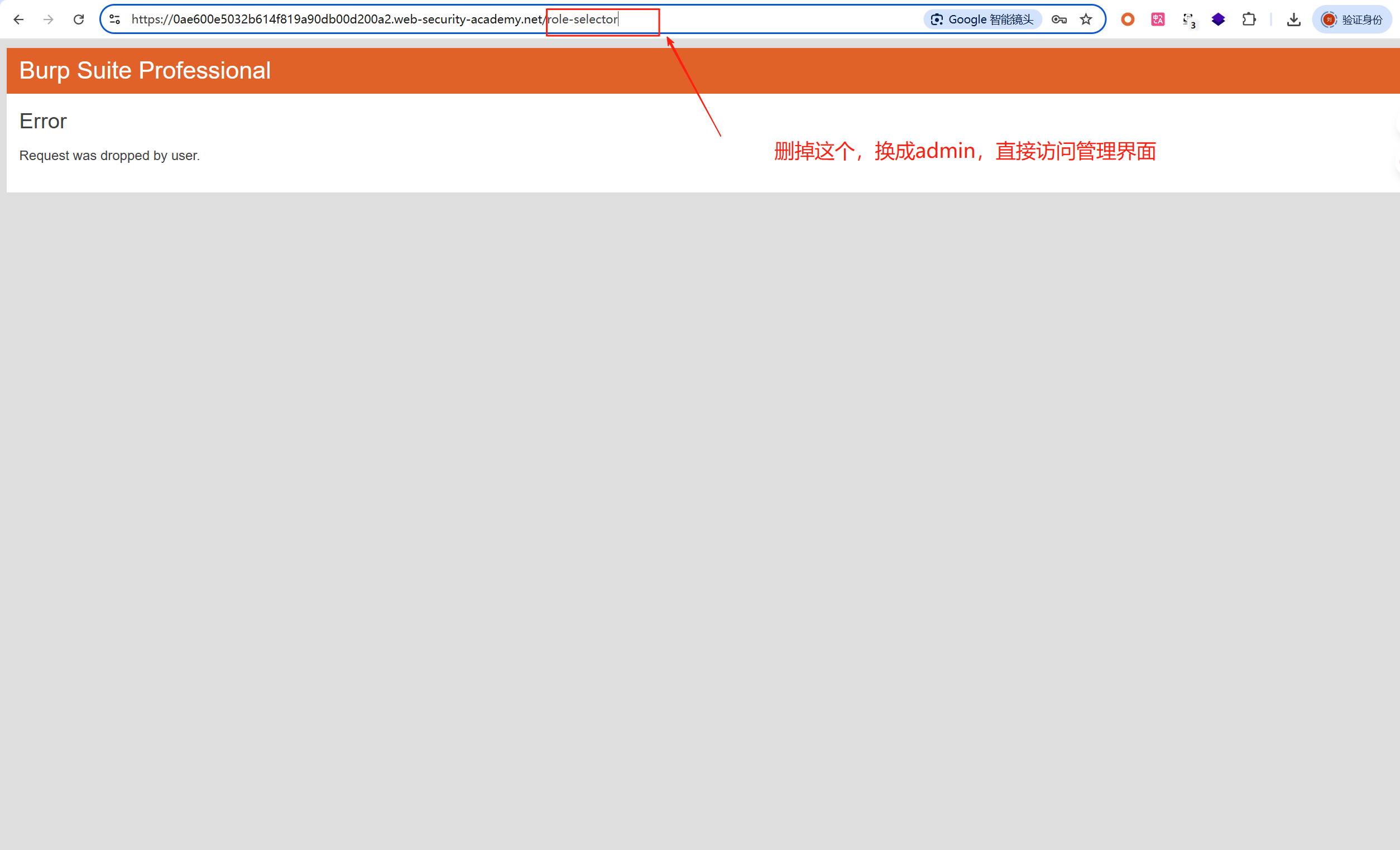 那换一下做法,到第二步选择角色的的时候,丢弃这个包,然后在浏览器直接插入/admin路径,看可以直接跳到管理界面吗?