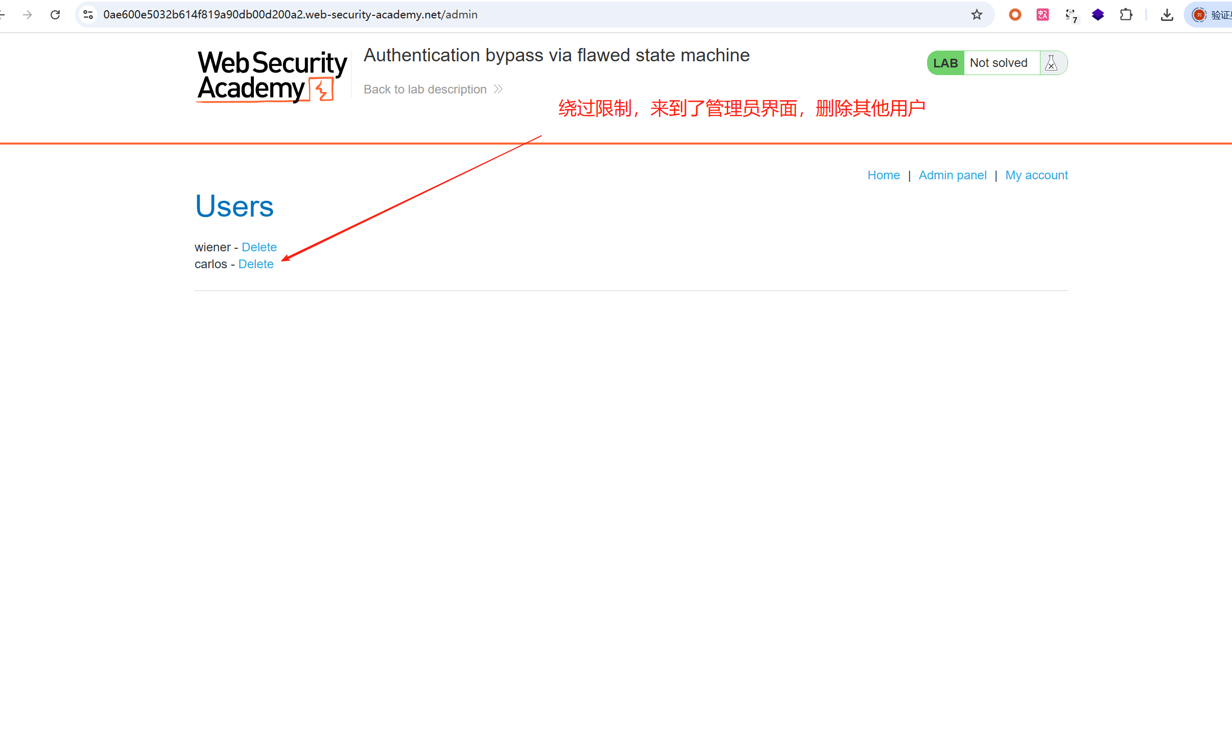 2、利用此缺陷绕过实验室的身份验证,访问管理界面,并删除用户 carlos。