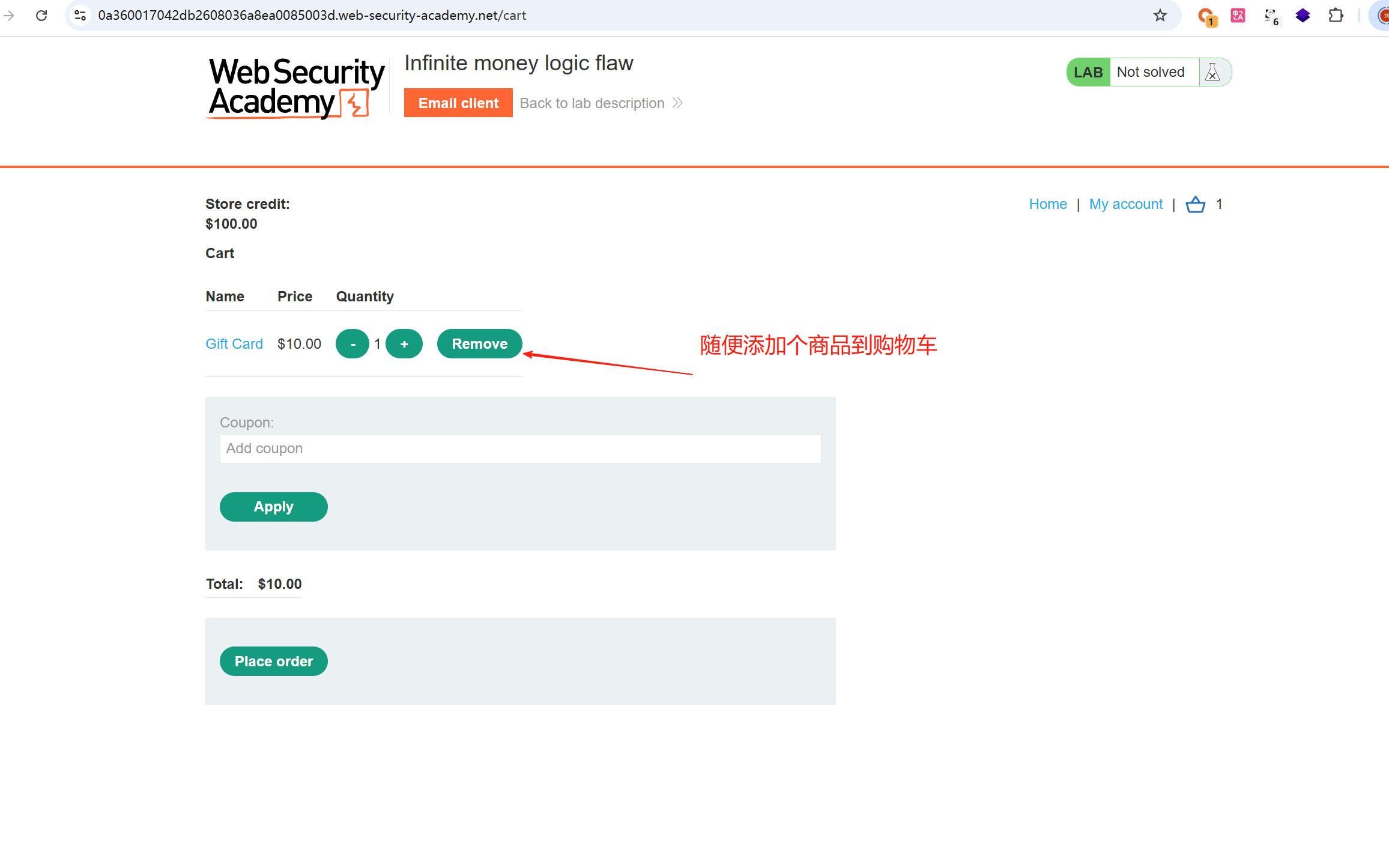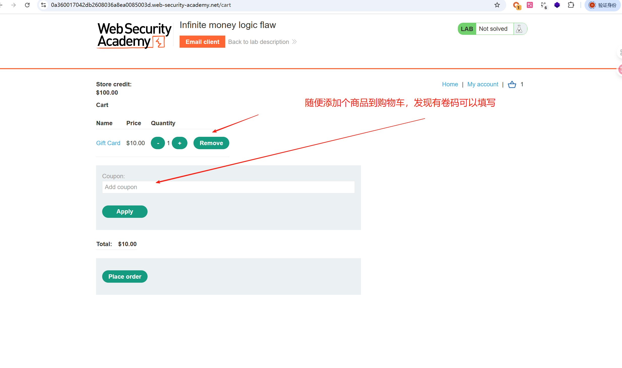 随便添加个商品到购物车,发现有卷码可以填写