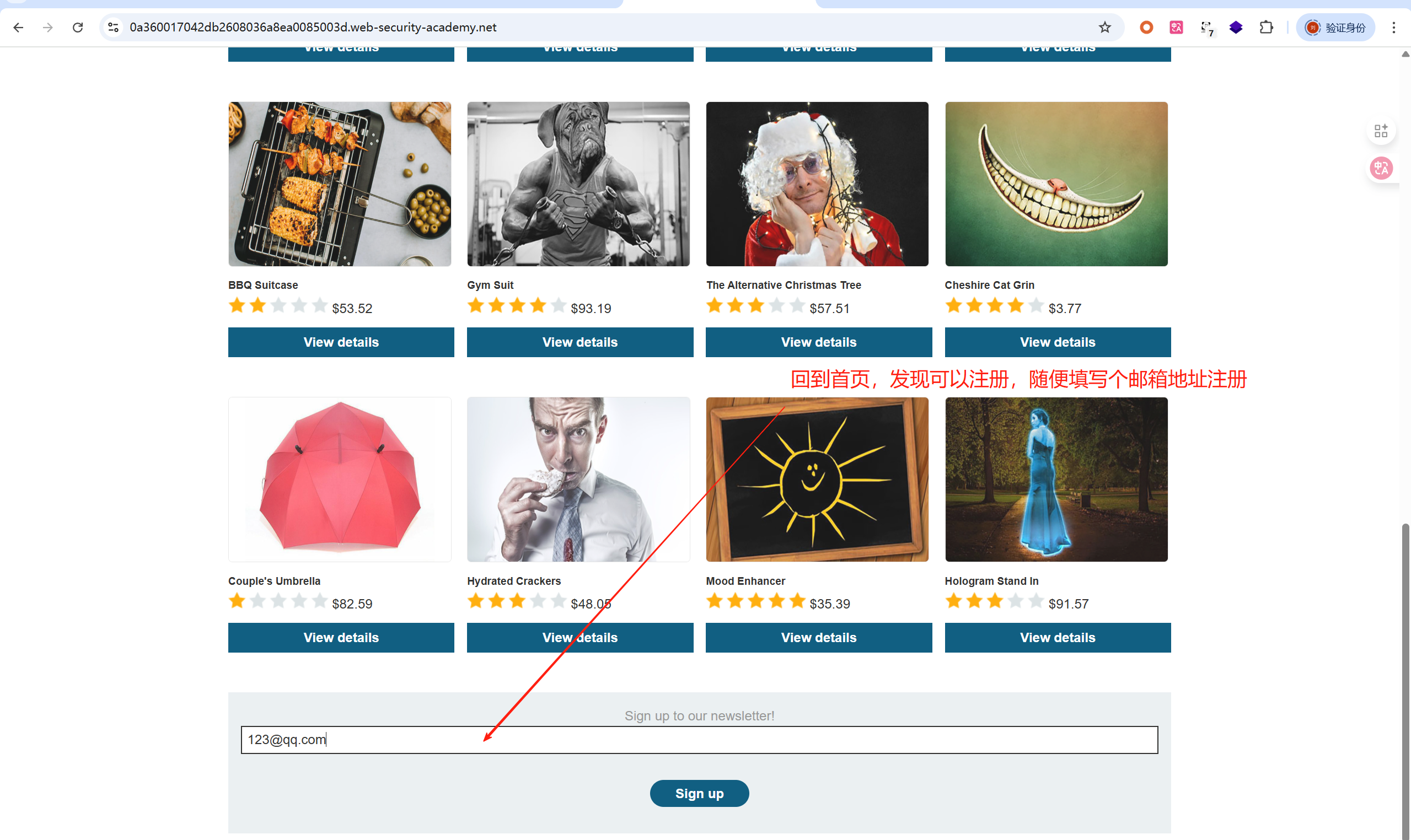 回到首页,发现可以注册,随便填写个邮箱地址注册