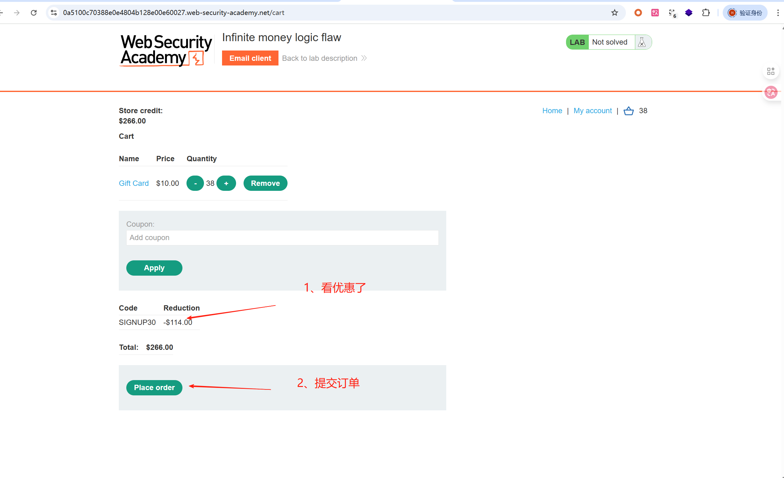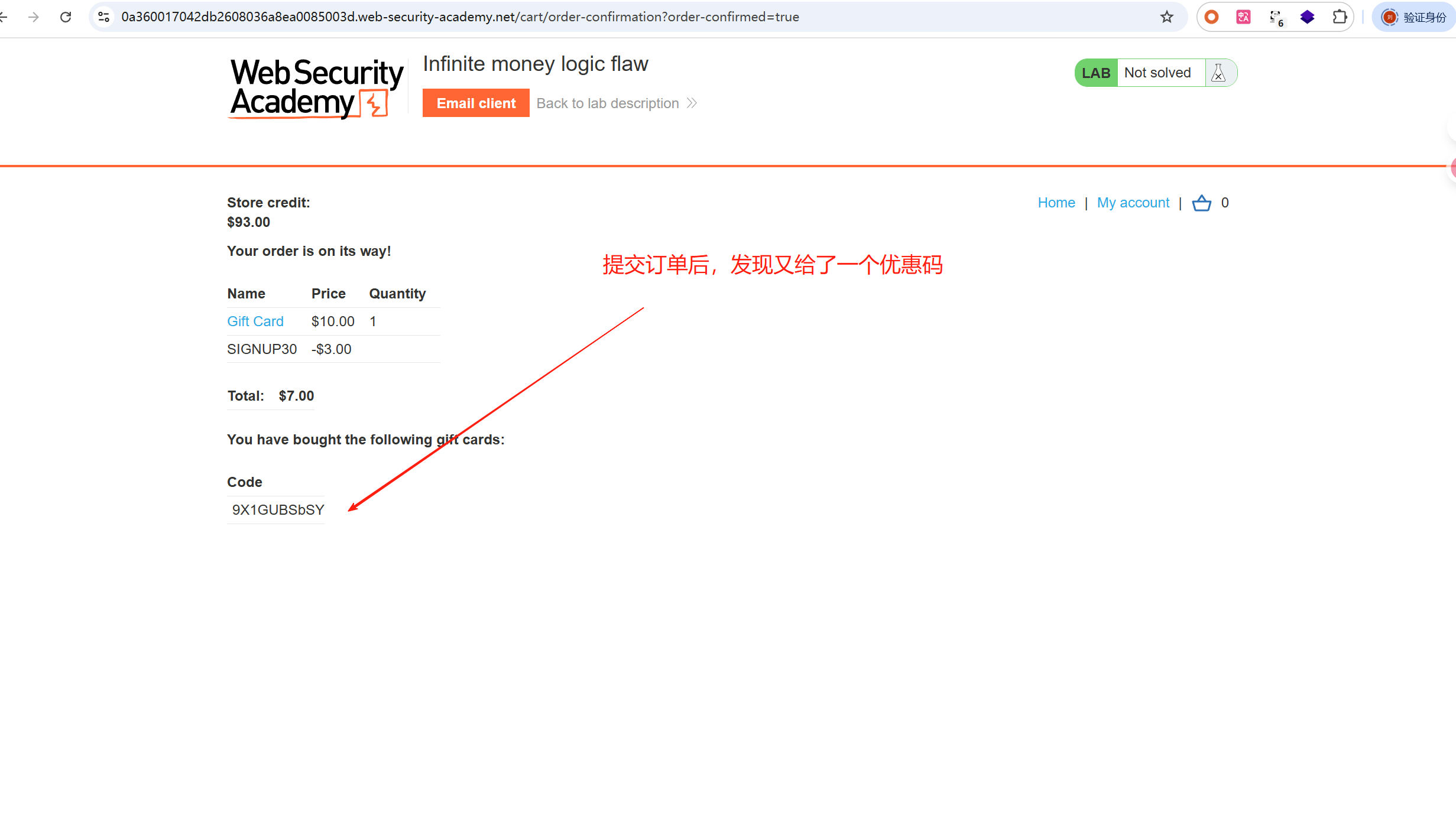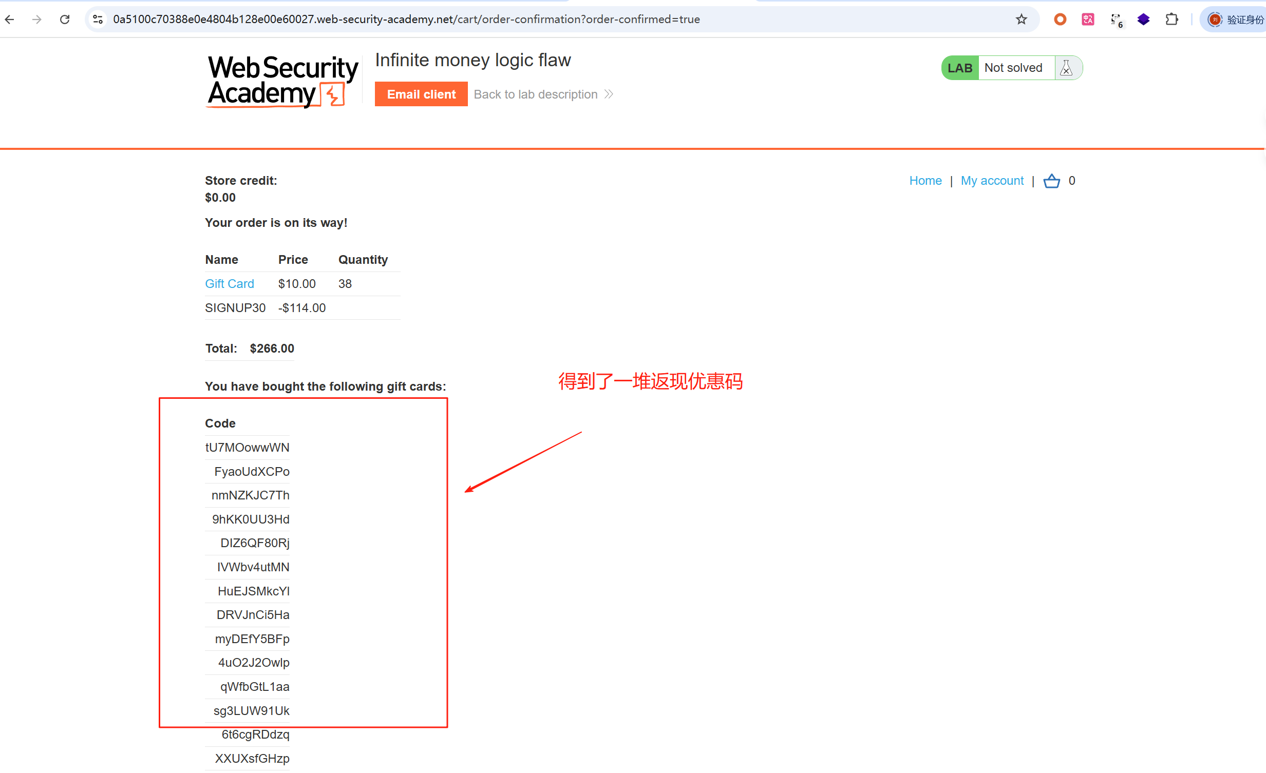 这一关就是发现商品使用注册订阅后的劵码,可以优惠,完成支付后又可以得到返现的劵码,这样无限的循环可以一直返现钱