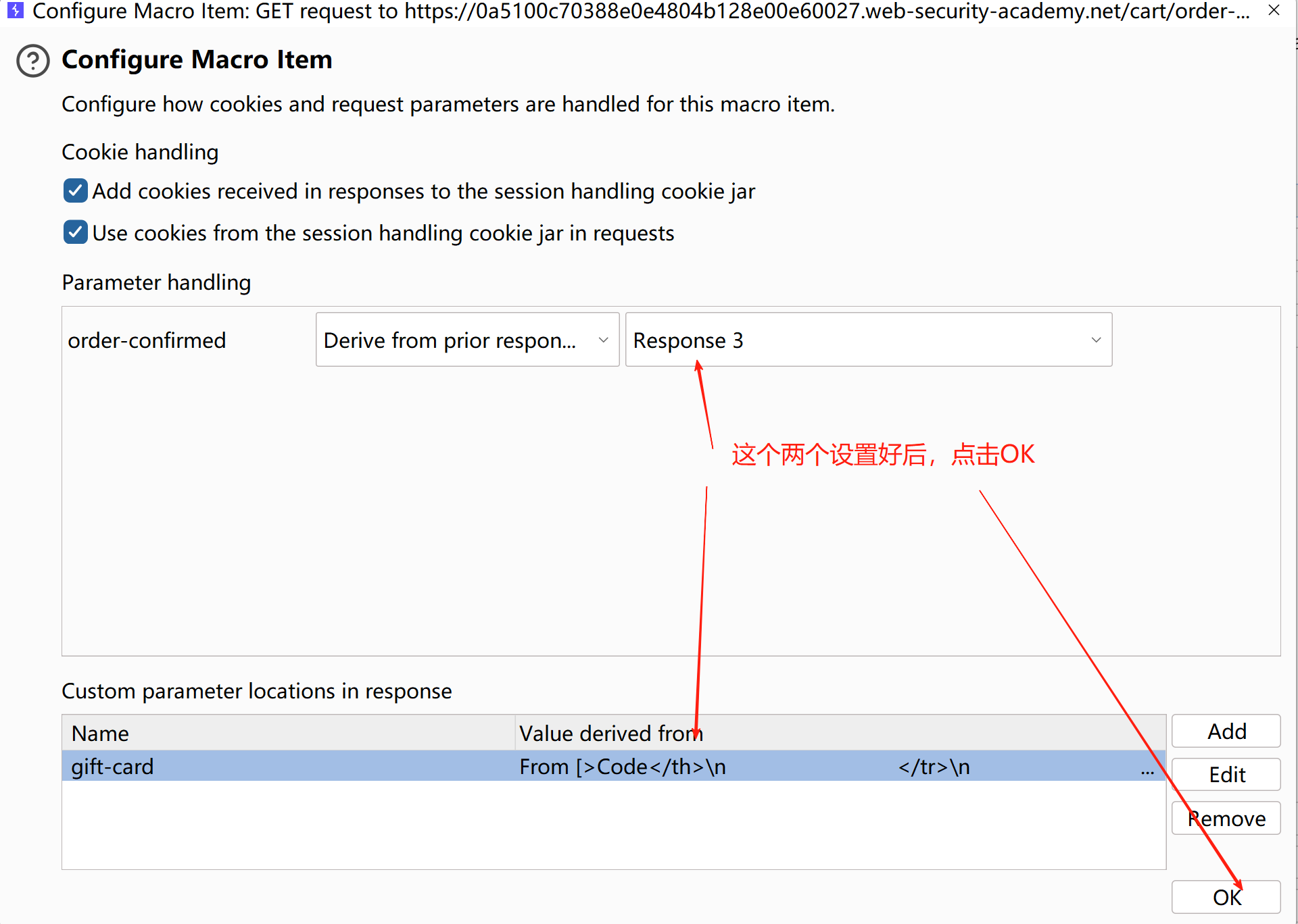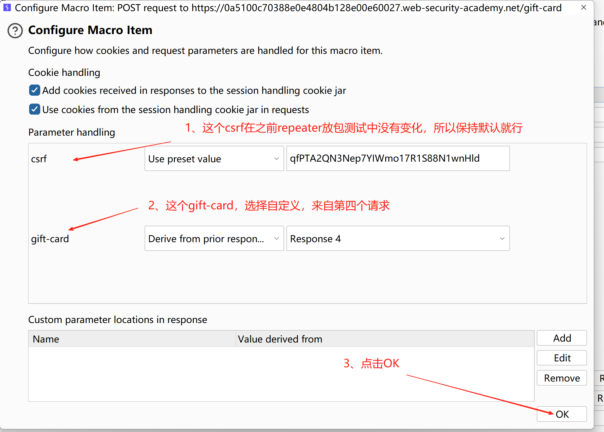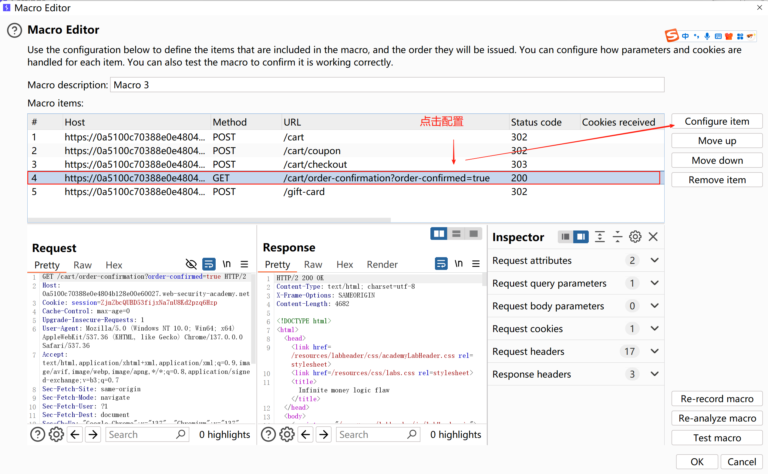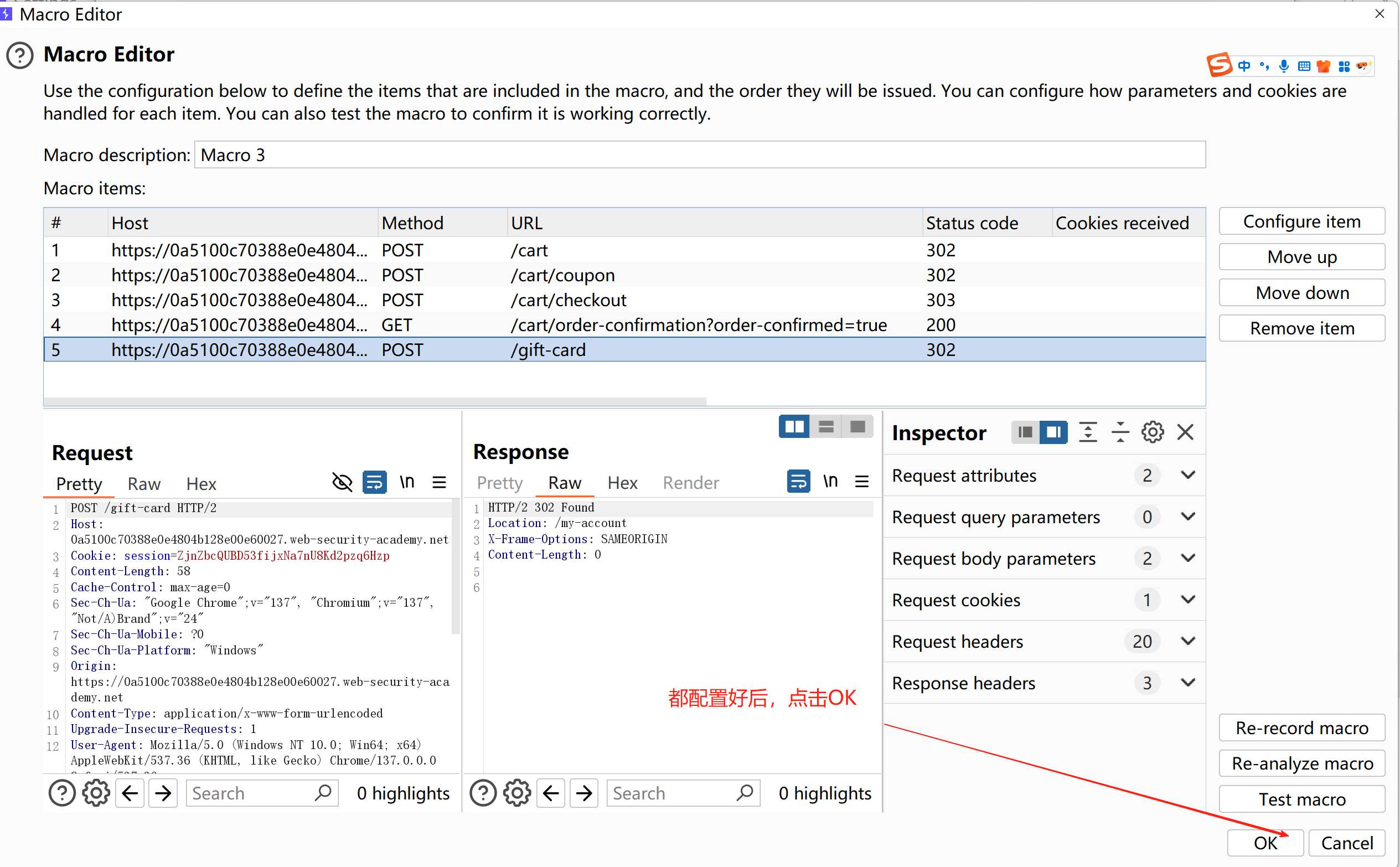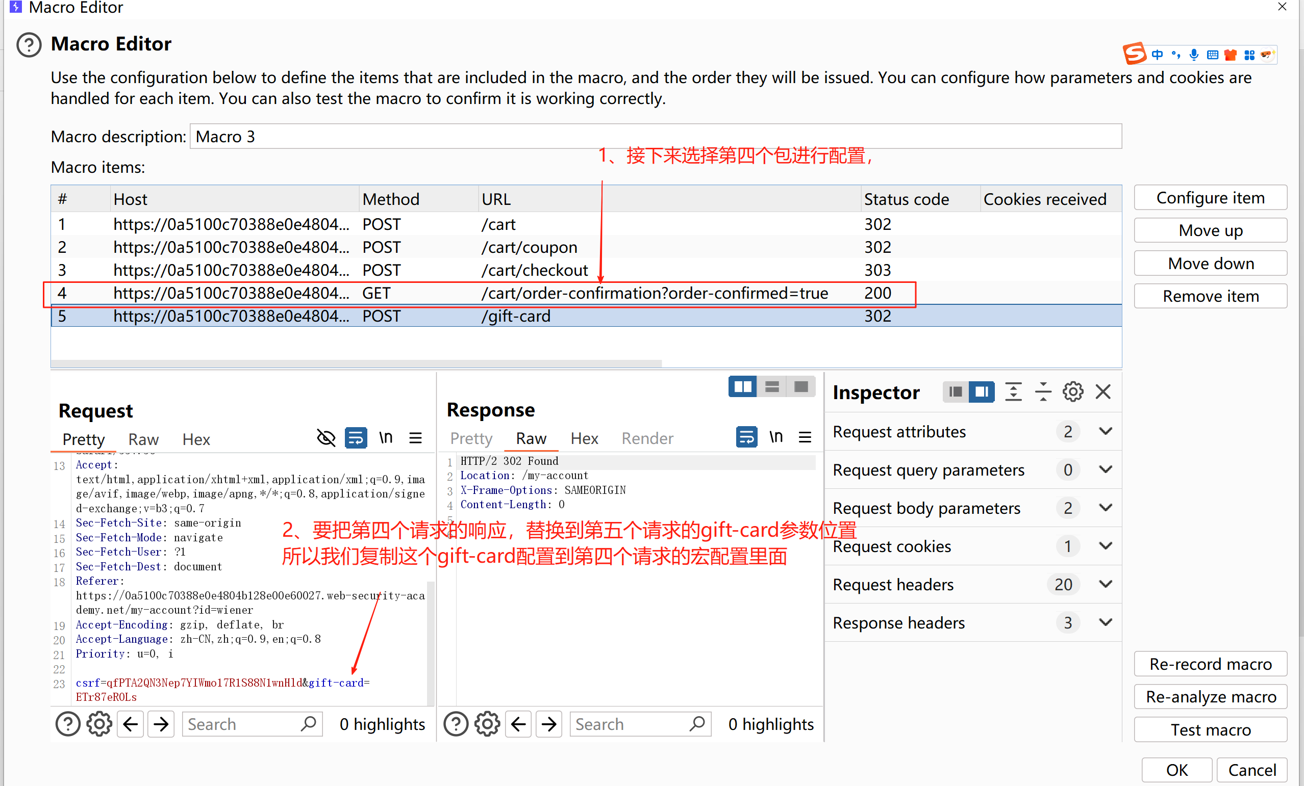 2、要把第四个请求的响应结果,替换到第五个请求的gift-card参数位置所以复制这个gift-card参数到第四个请求的宏配置里面