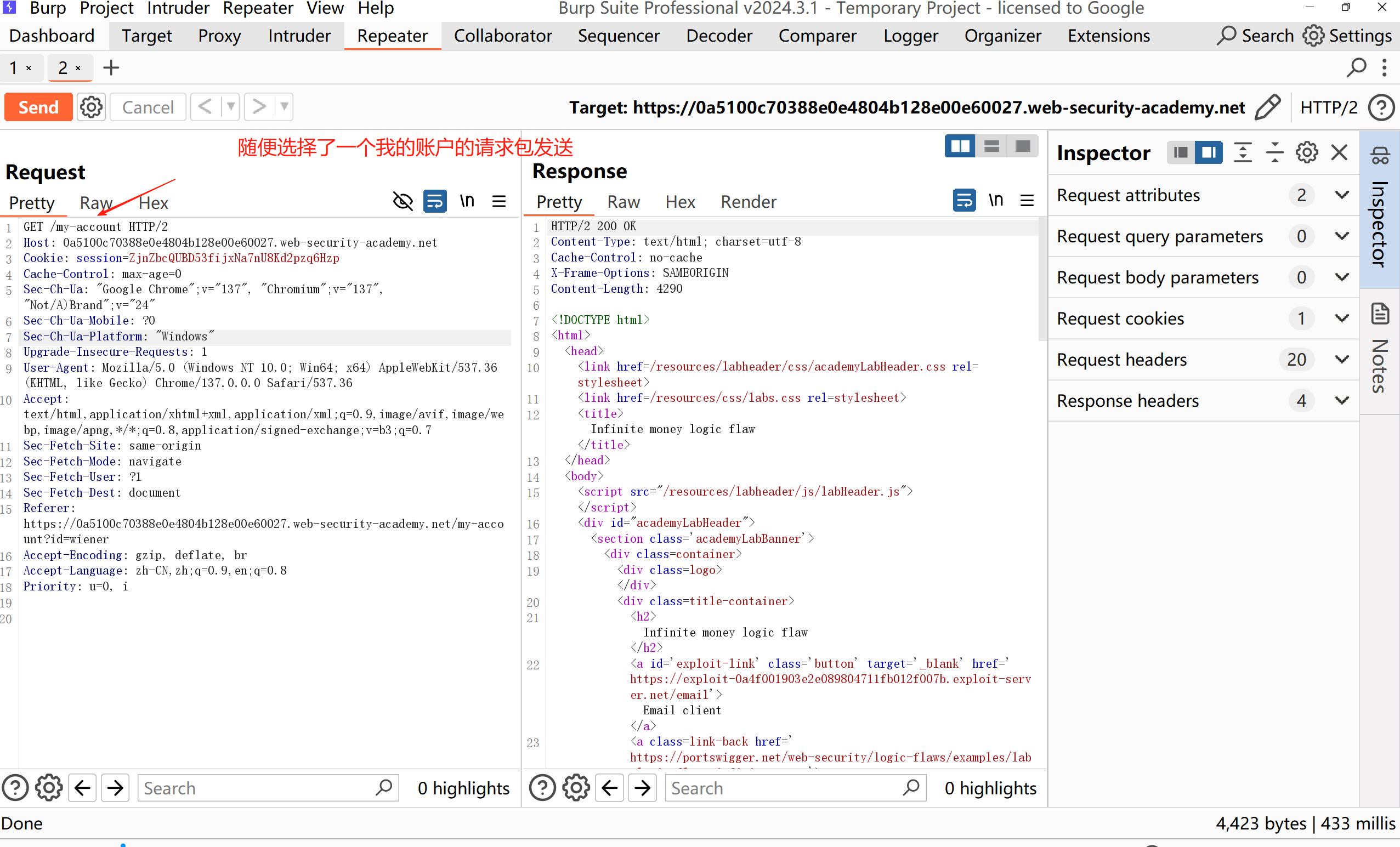 2、自己的帐户:wiener:peter