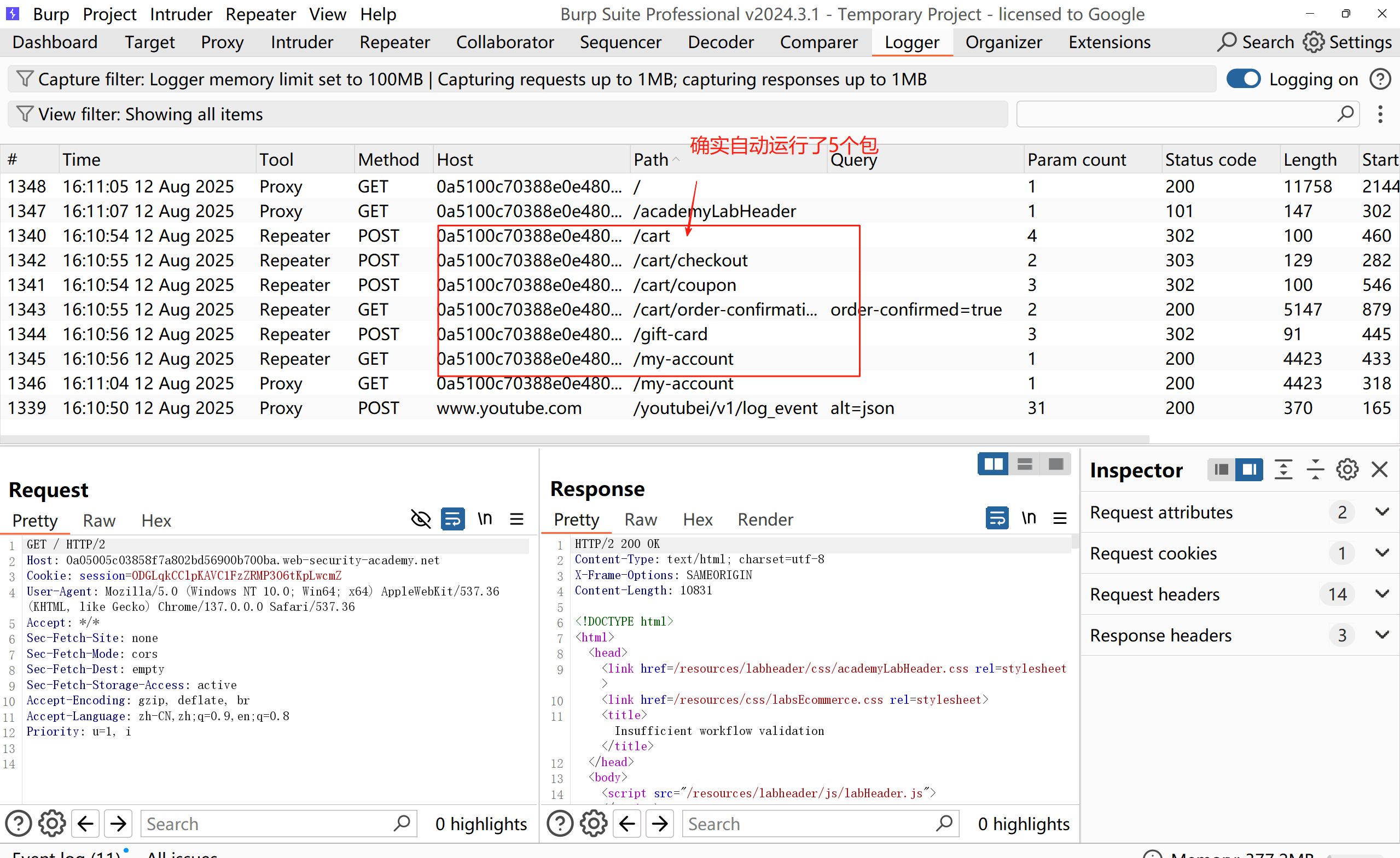 测试一下,发送一个包,burp自动运行五个包