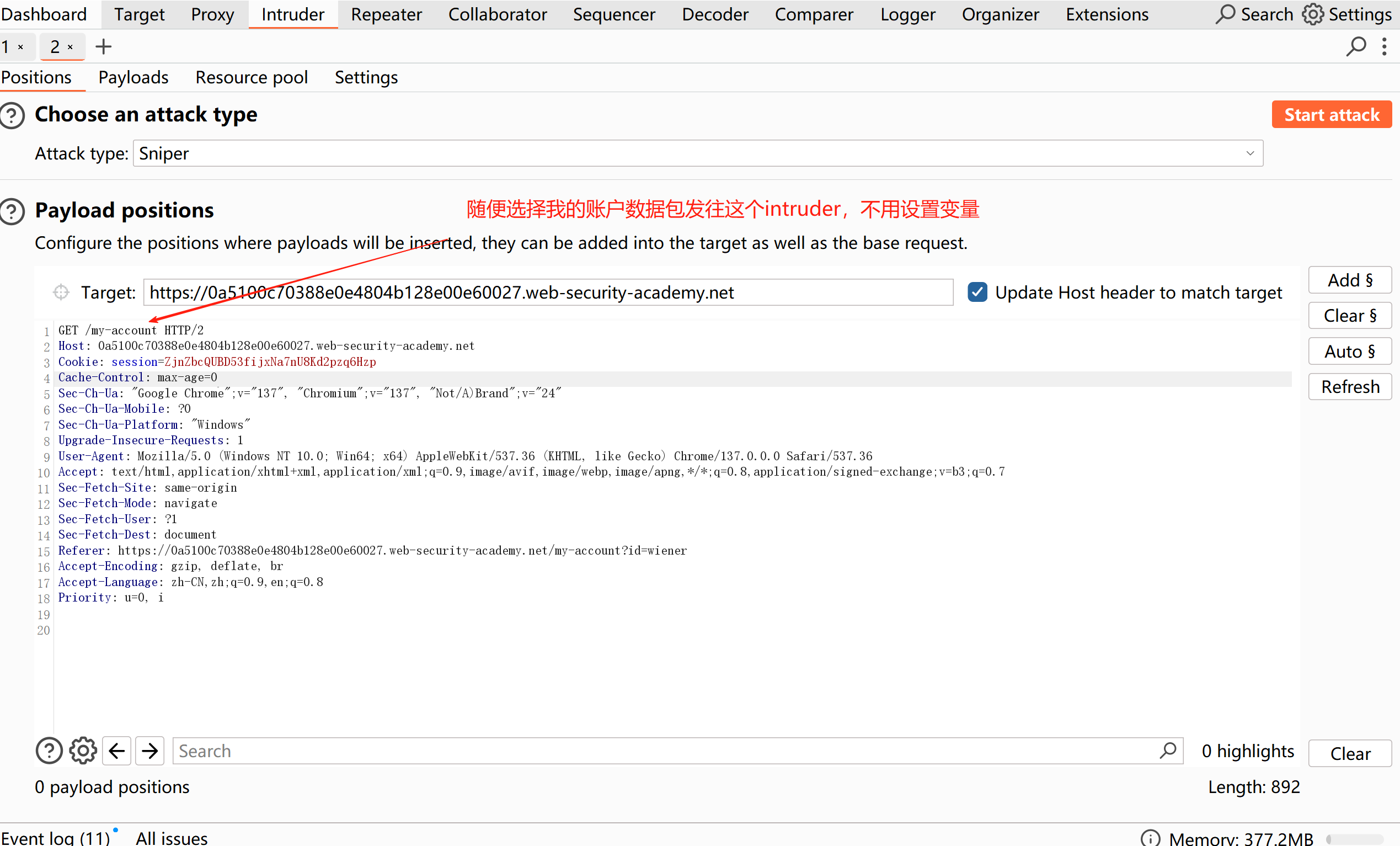 随便选择我的账户数据包发往这个intruder,不用设置变量