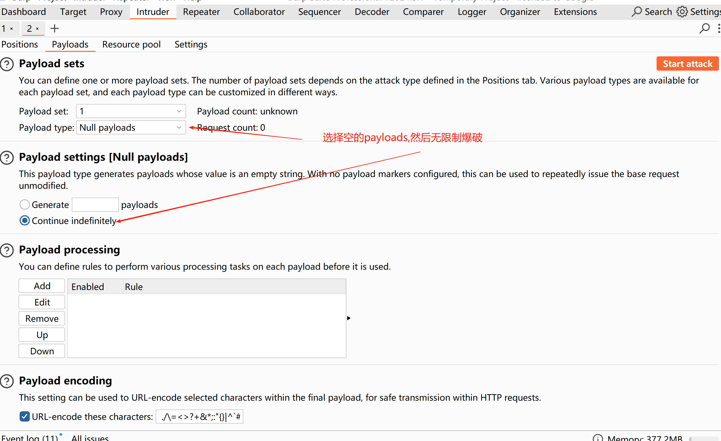 那就把payloads设置成无限制爆破
