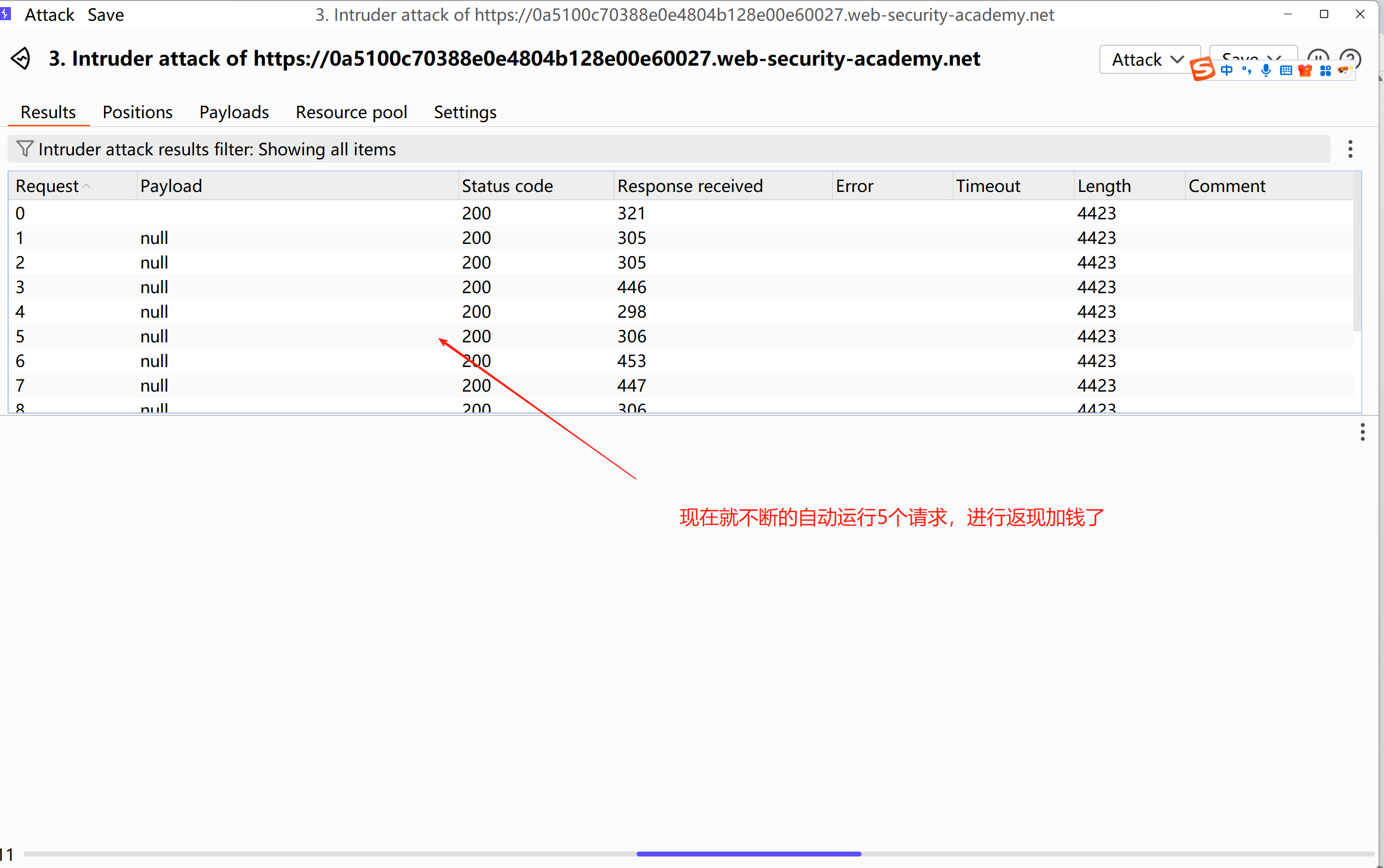 现在就不断的自动运行5个请求,进行返现加钱了