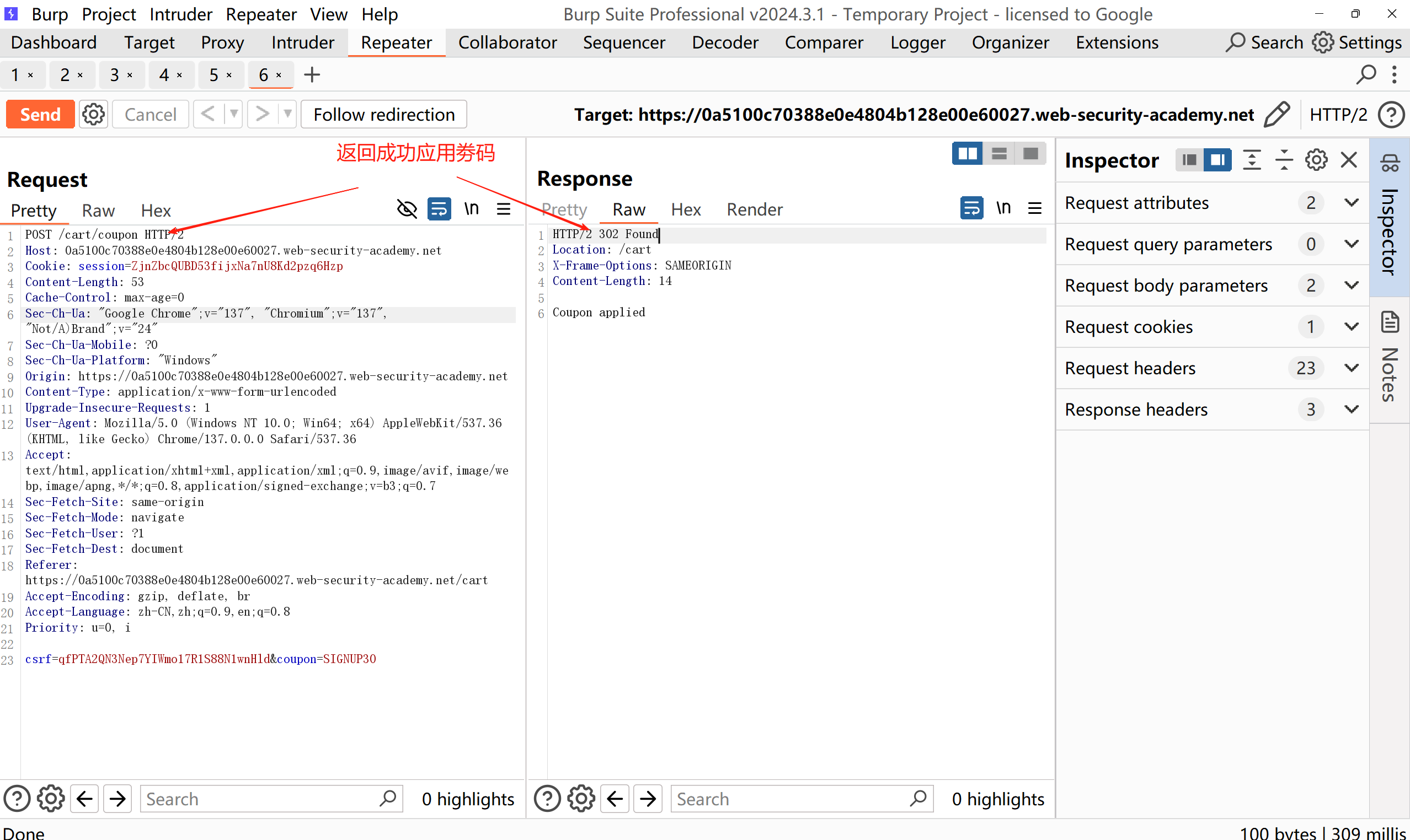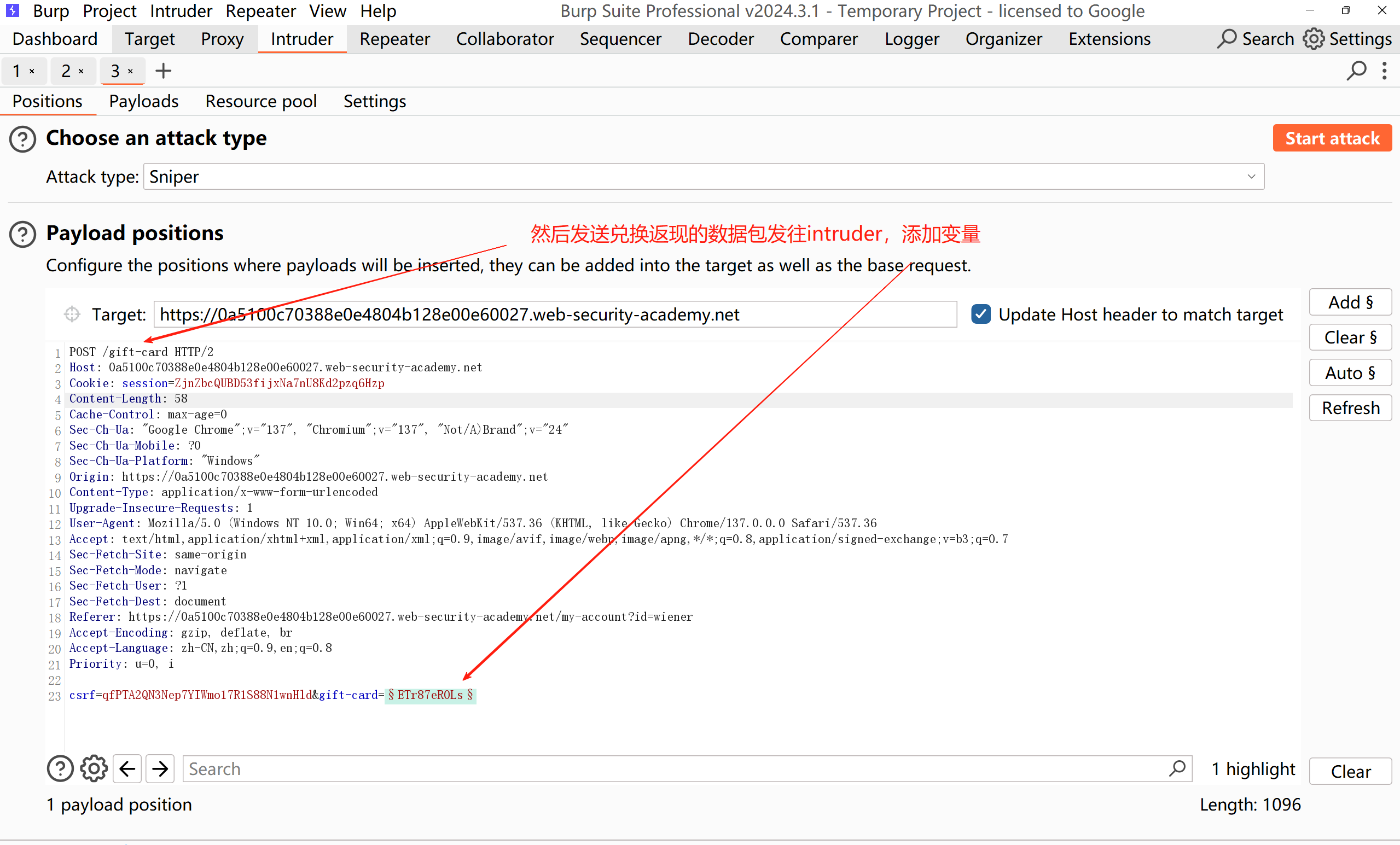 接下来把兑换返现劵码的数据包发往intruder