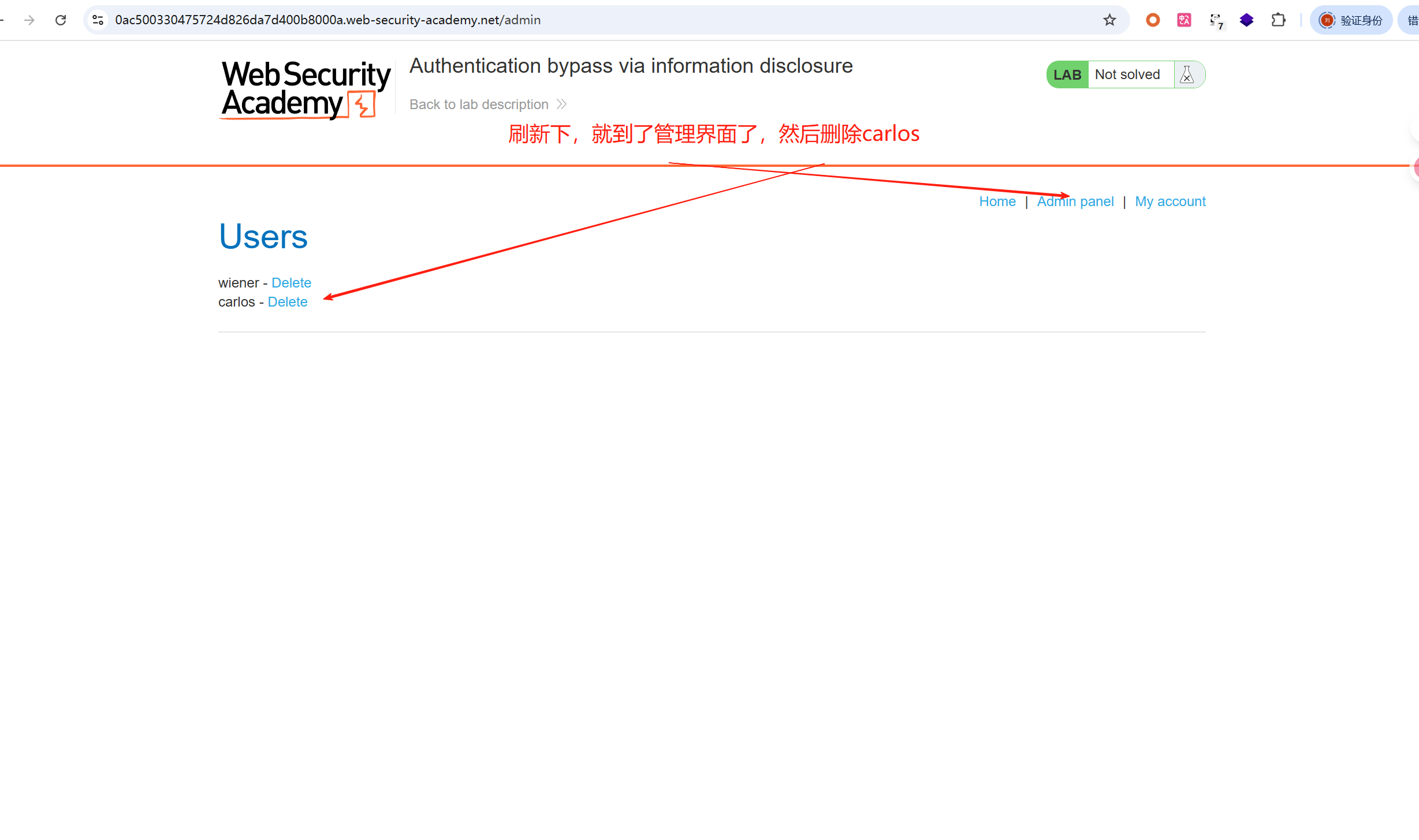 然后浏览到主页,刷新下,就到了管理界面了,然后删除carlos