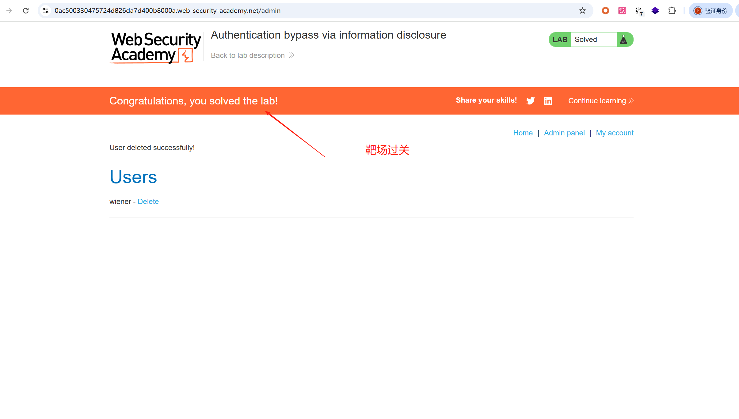 提示:1、靶场的管理界面存在绕过身份验证漏洞