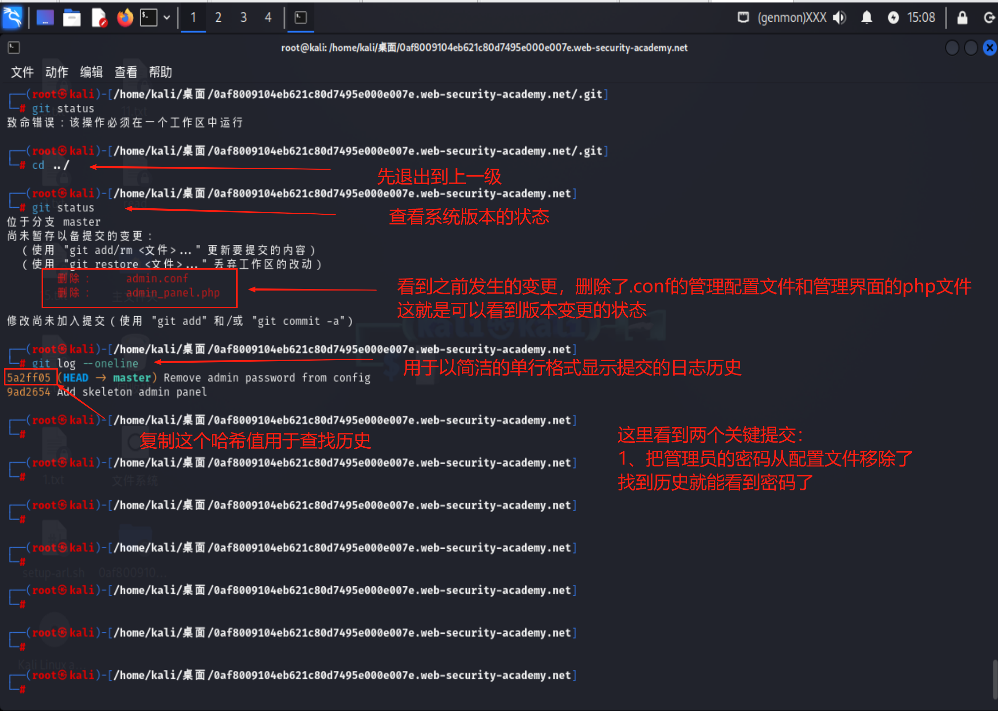提示:1、靶场通过其版本控制历史记录泄露敏感信息