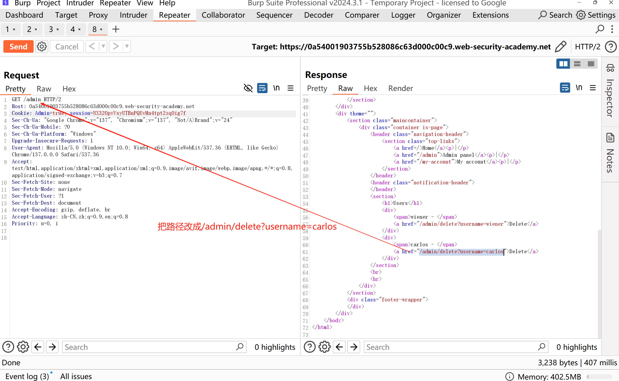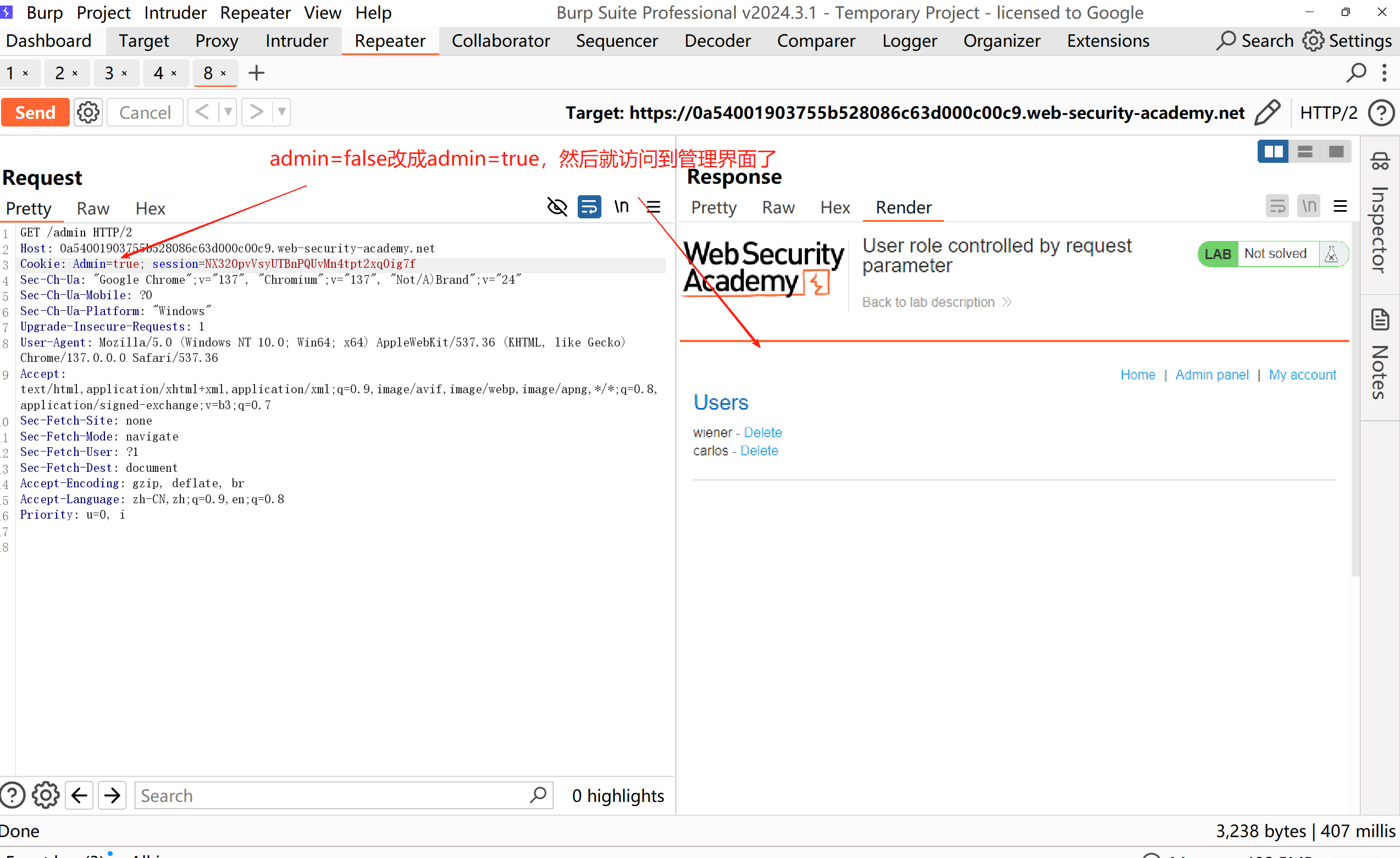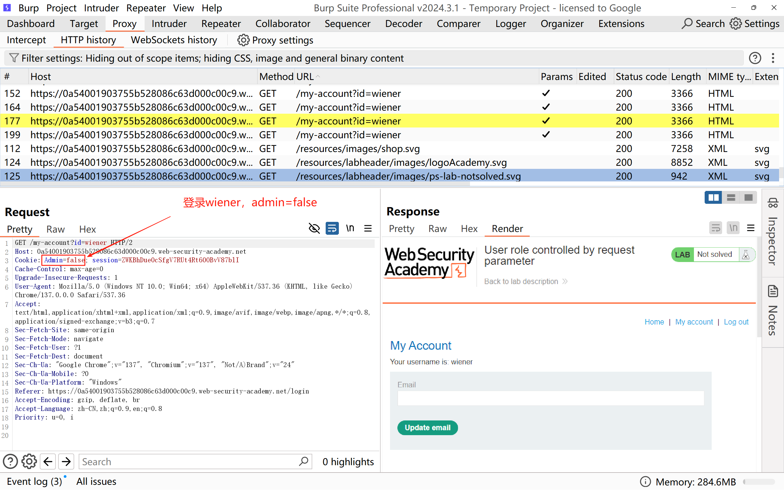 WEB bp官方靶场Access control vulnerabilities 访问控制漏洞3