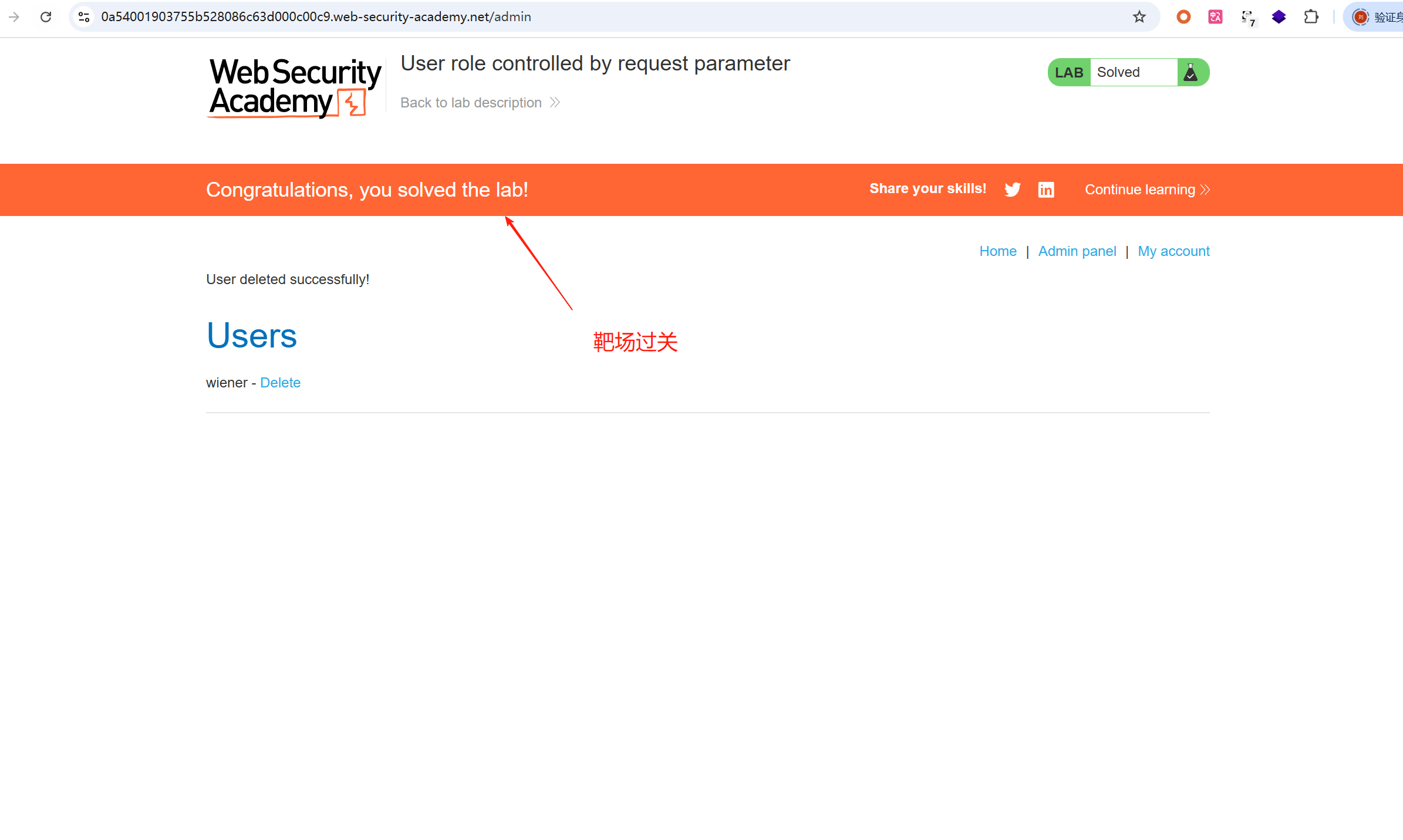 这一关就是通过请求参数,绕过限制,访问管理界面,删除用户