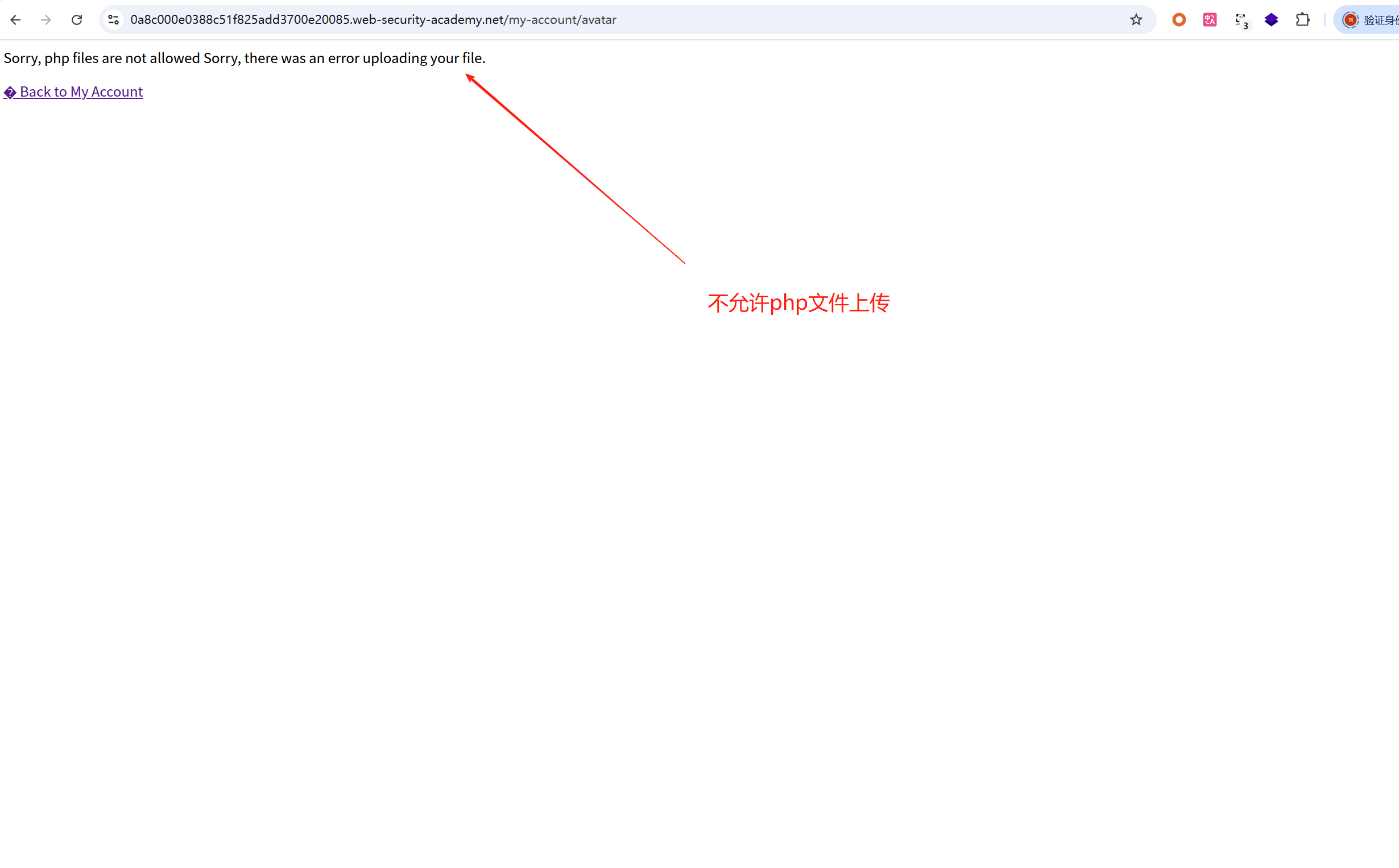 4、显示:上传错误,该响应指示不允许上传扩展名为 .php 的文件