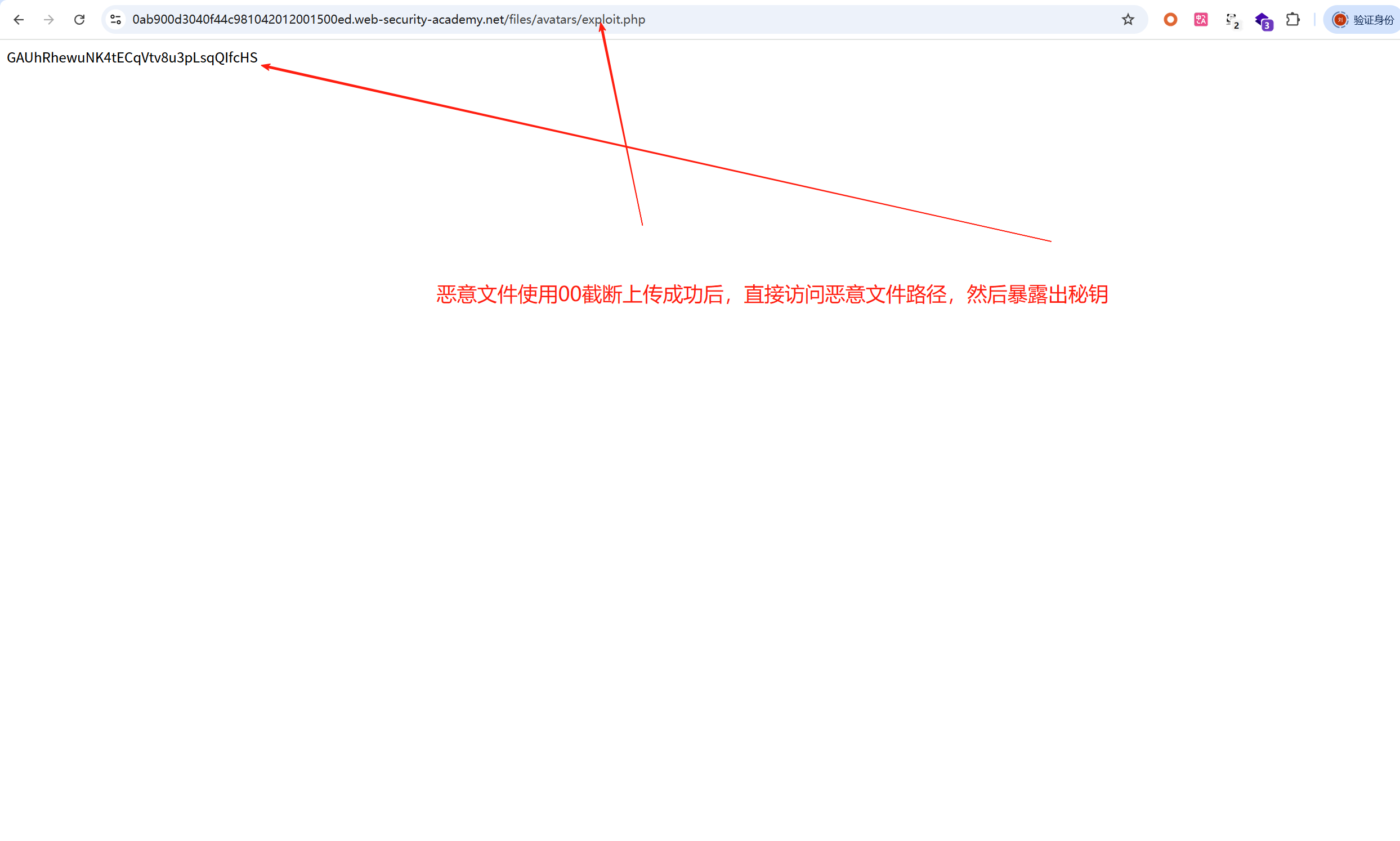 恶意文件使用00截断上传成功后,直接访问恶意文件路径,然后暴露出秘钥