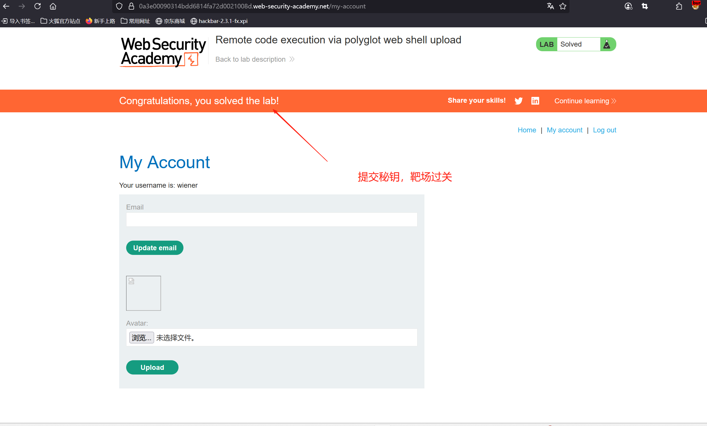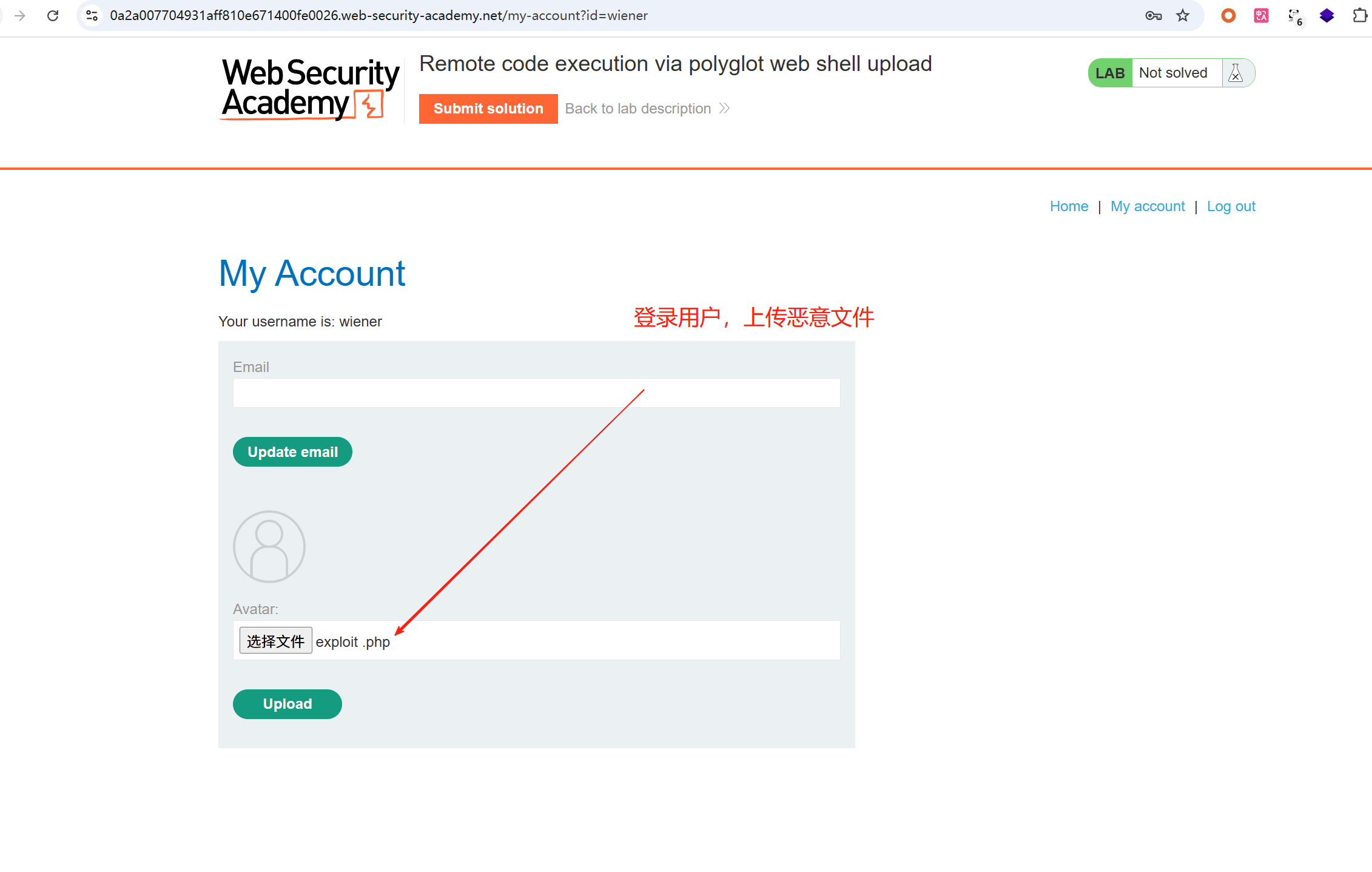 提示:1、靶场包含易受攻击的图片上传功能