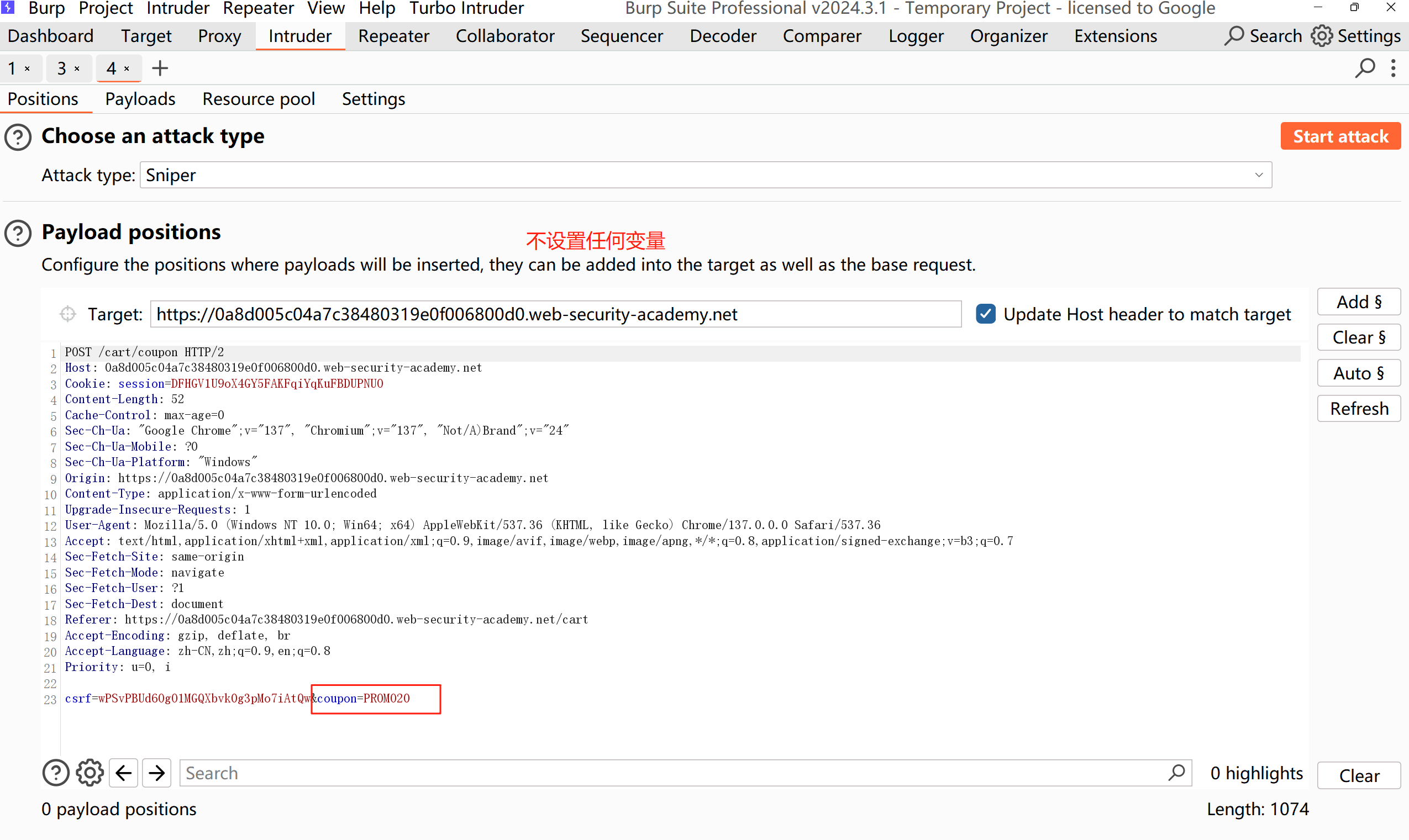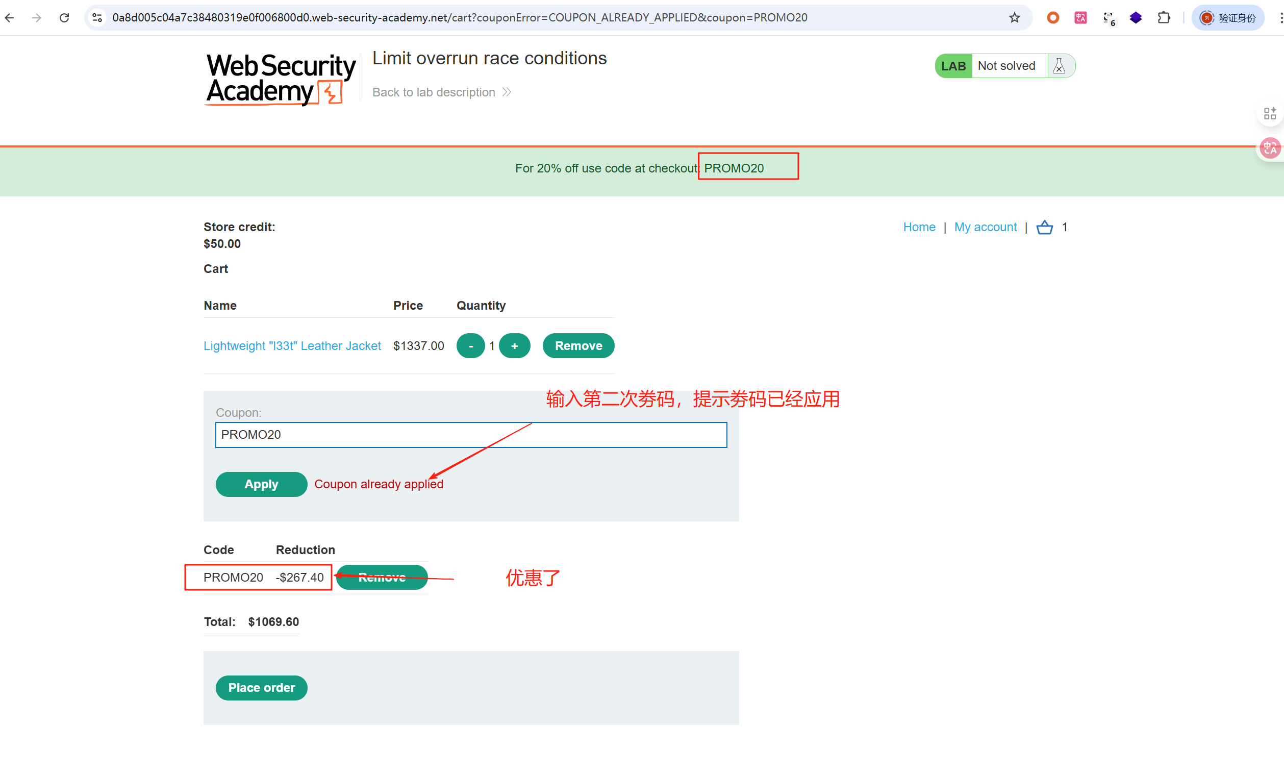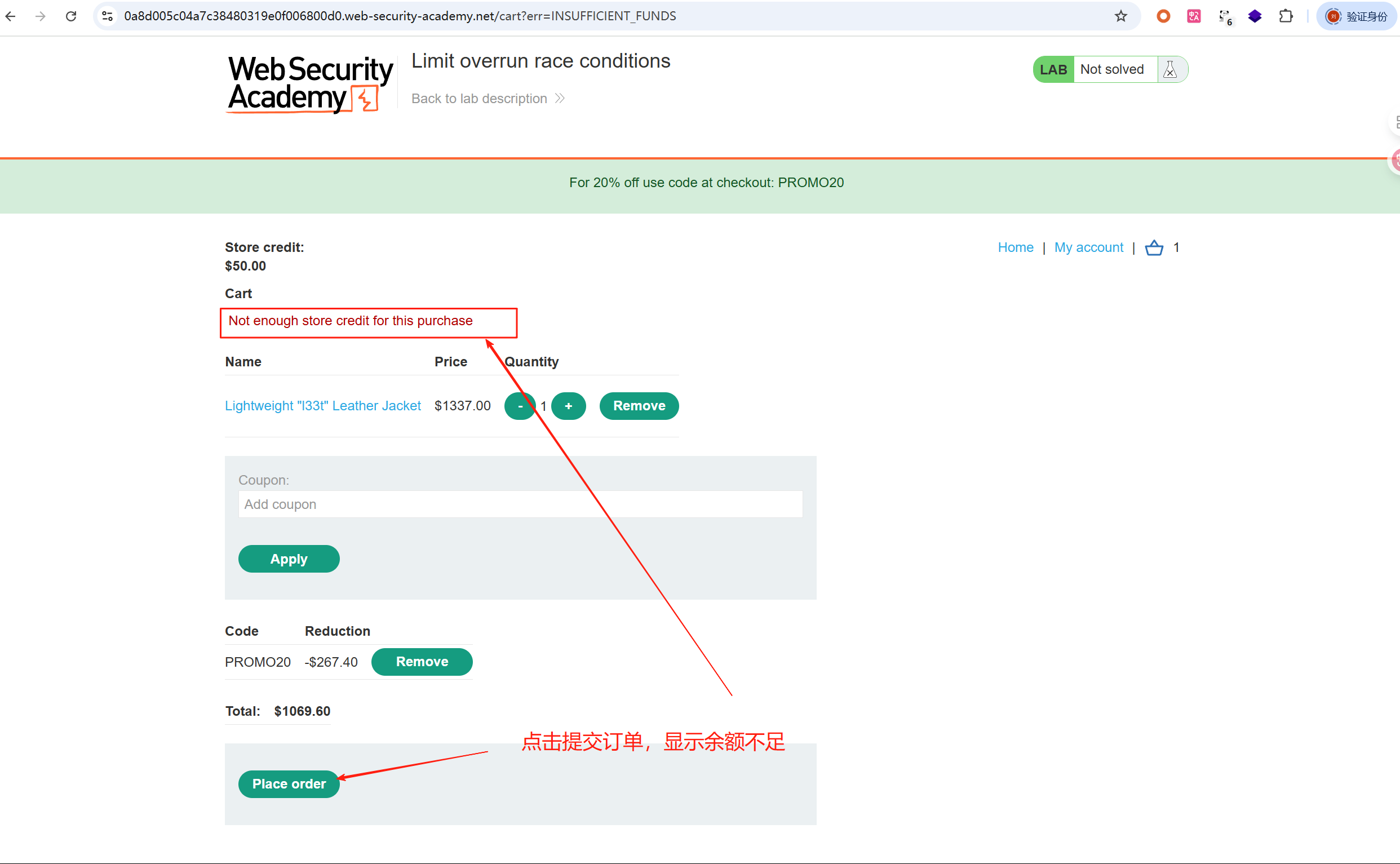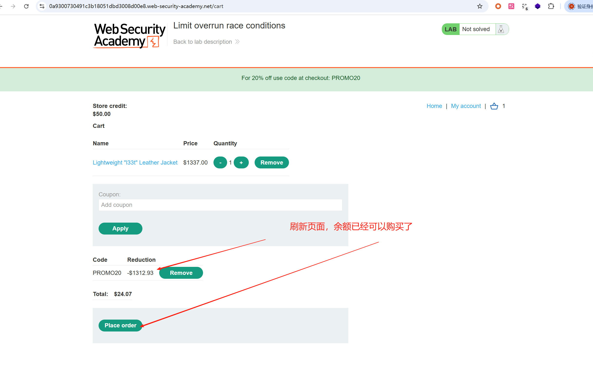 提示:1、靶场的购买流包含一个竞争条件,使你能够以非预期的价格购买商品
