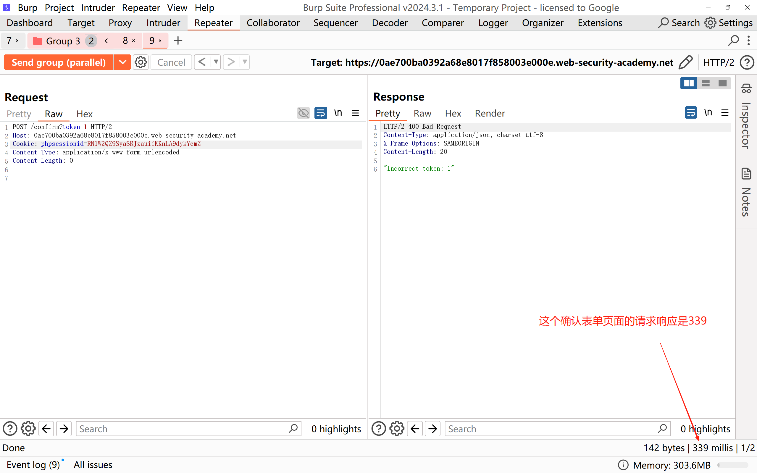 这个确认表单页面的请求响应是339
