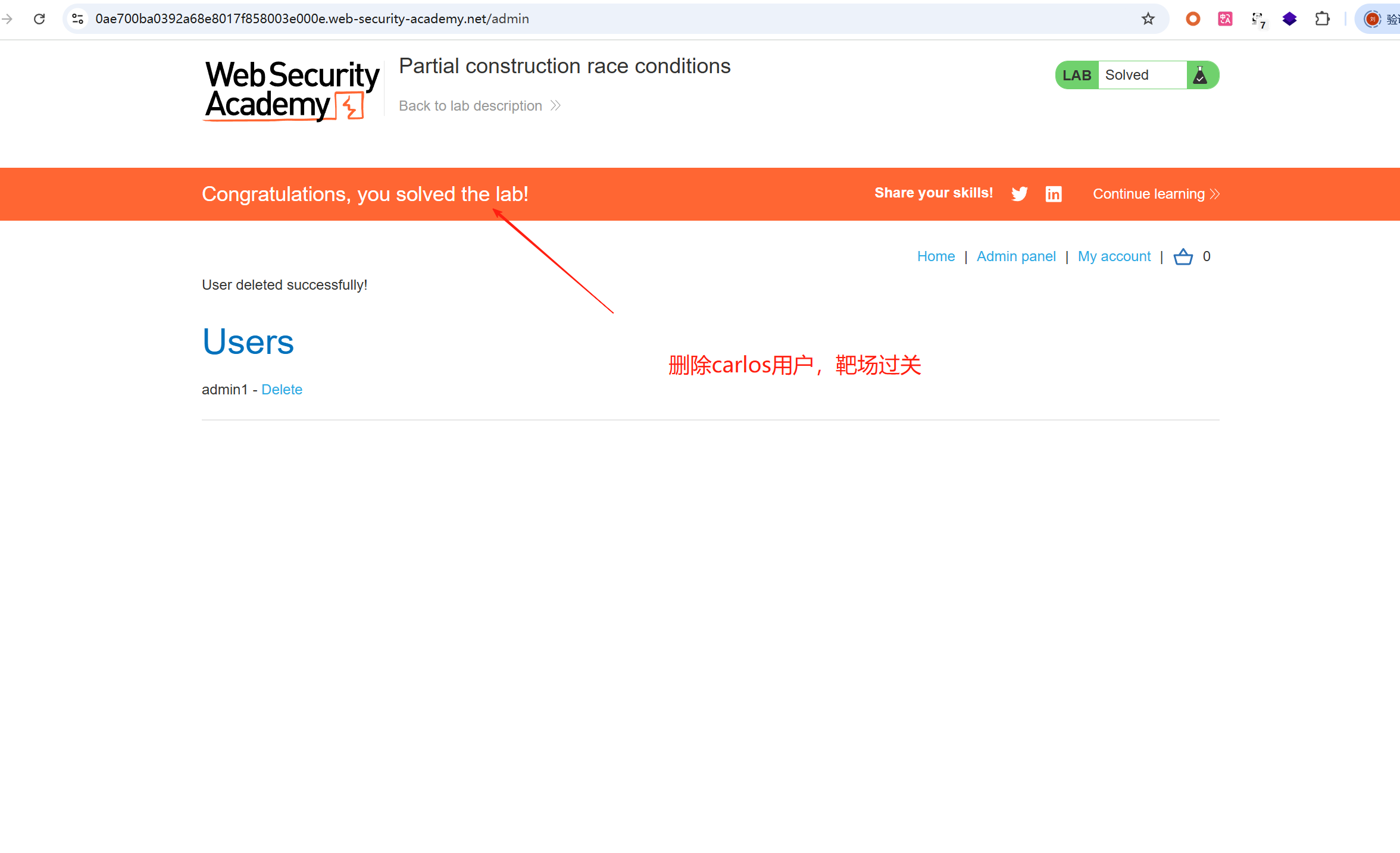 删除carlos用户,靶场过关