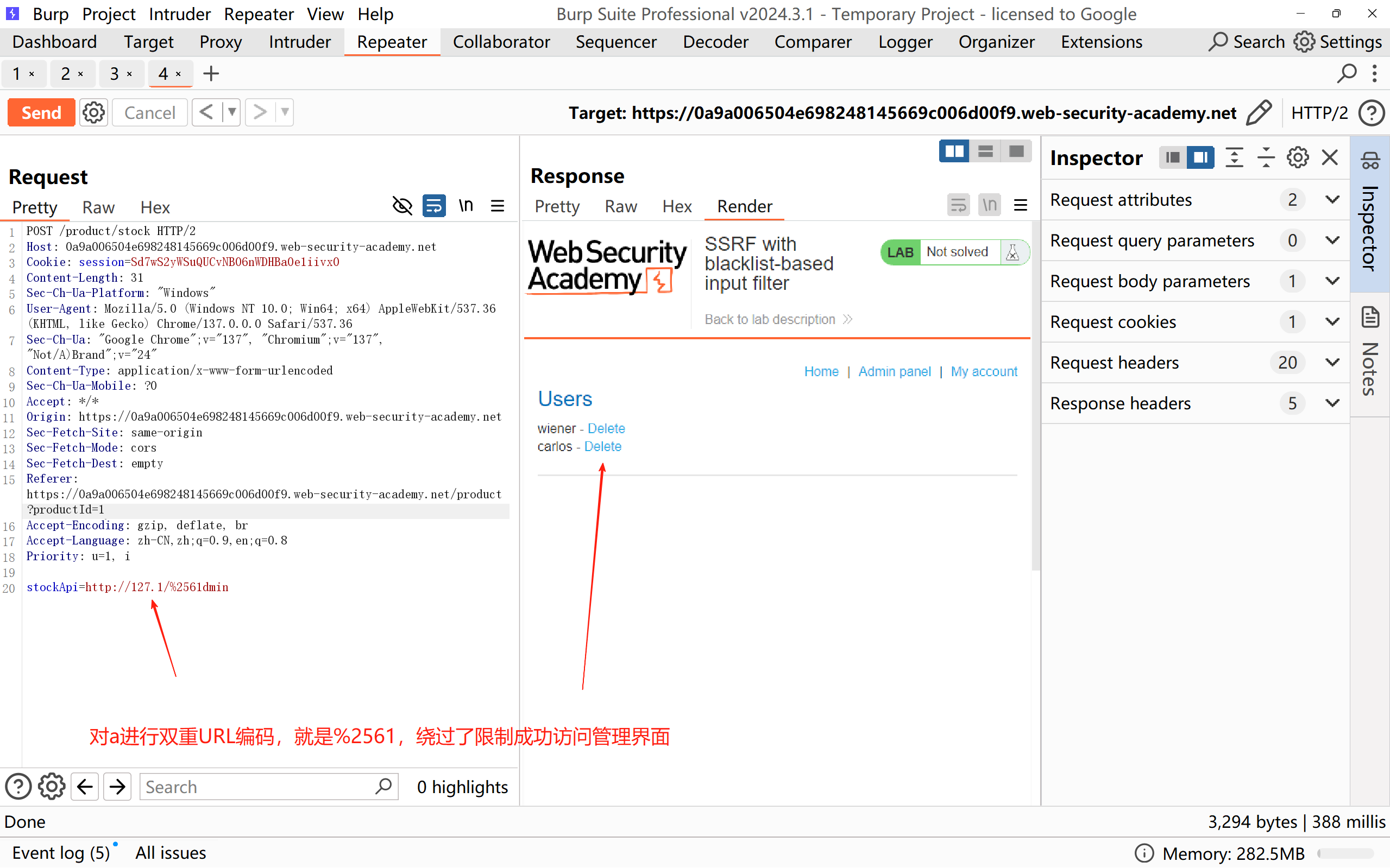 改成:stockApi=http://127.1/%2561dmin/delete?username=carlos