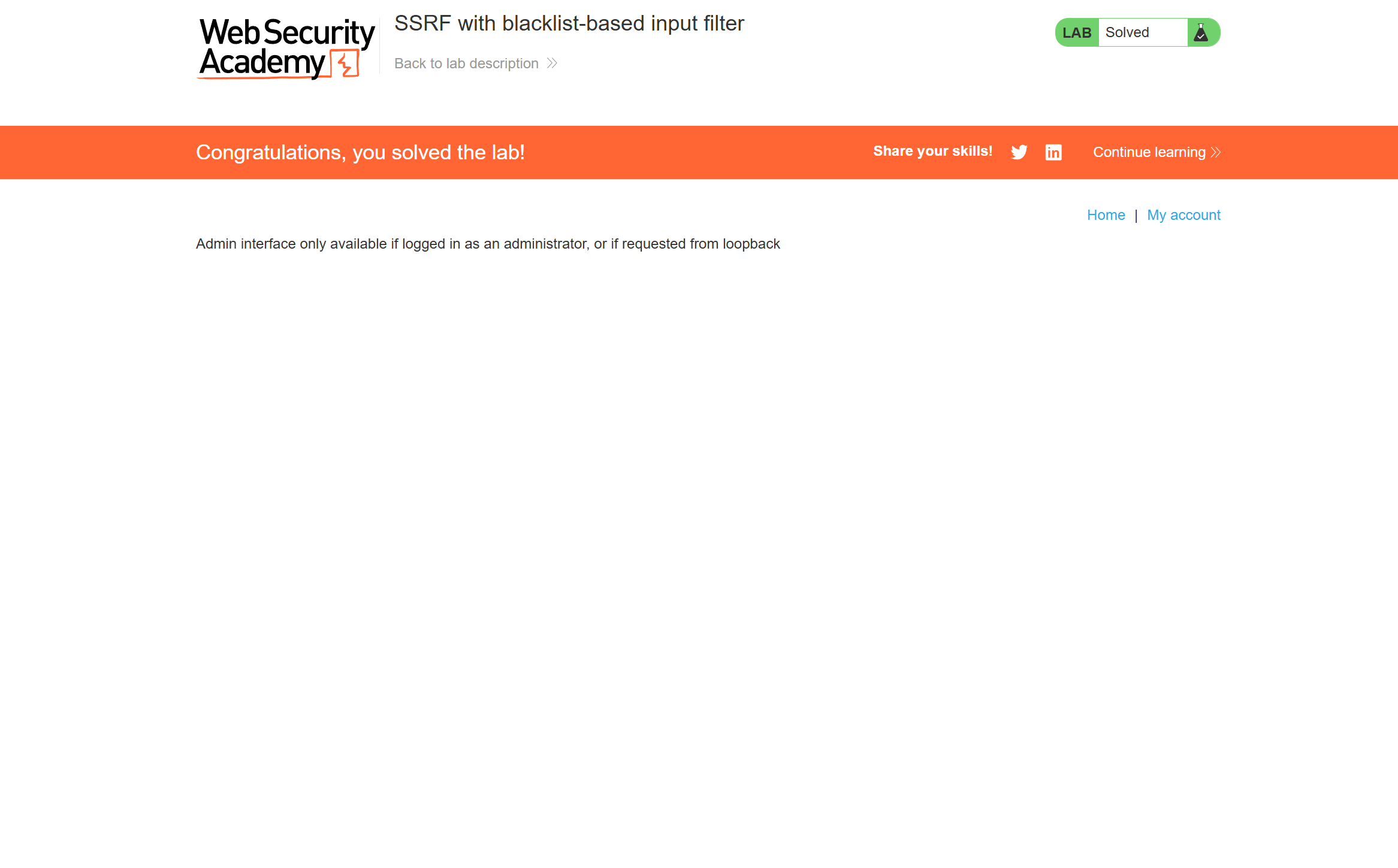 这一关就是常规的修改后的URL被放到黑名单被过滤,通过使用特殊的ssrf绕过限制