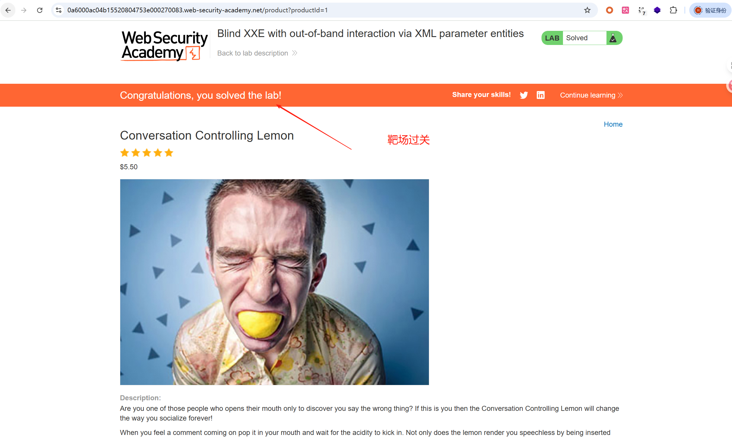 第四关 通过 XML 参数实体进行带外交互的盲 XXE漏洞