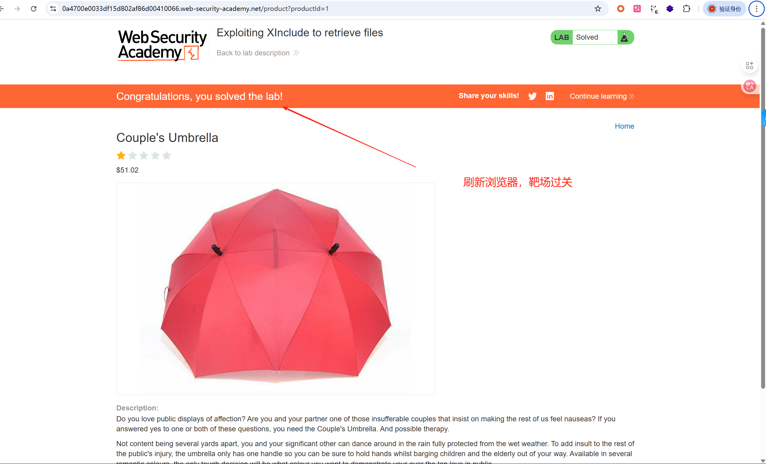 刷新浏览器,靶场过关